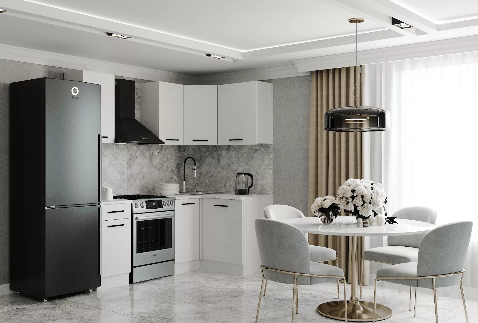 Кухонный гарнитур Белый глянец Угловой 2000х1200