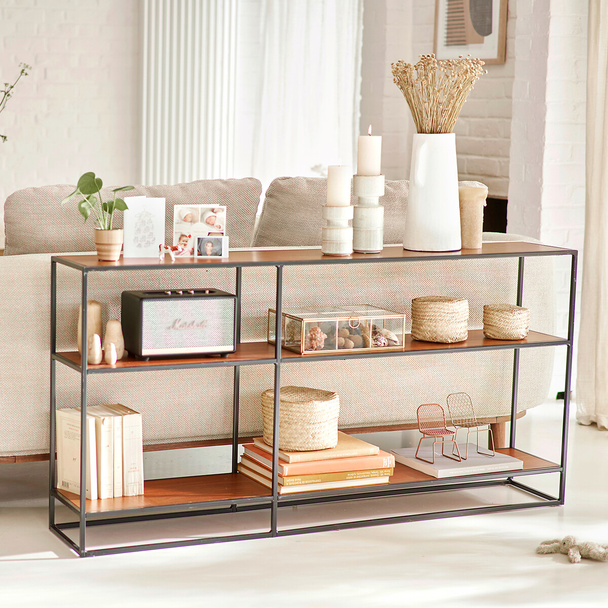 Этажерка-консоль из орехового дерева и металла Watford единый размер черный