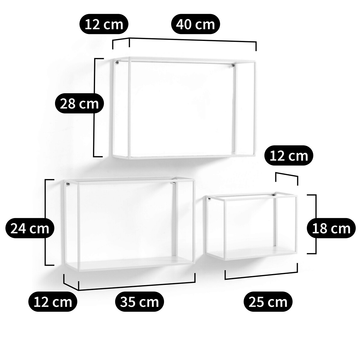 Комплект из 3 металлических полок Hiba черный