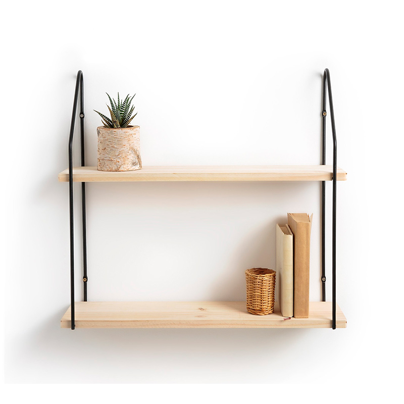 Этажерка двойная настенная из дерева и металла VINTO черный