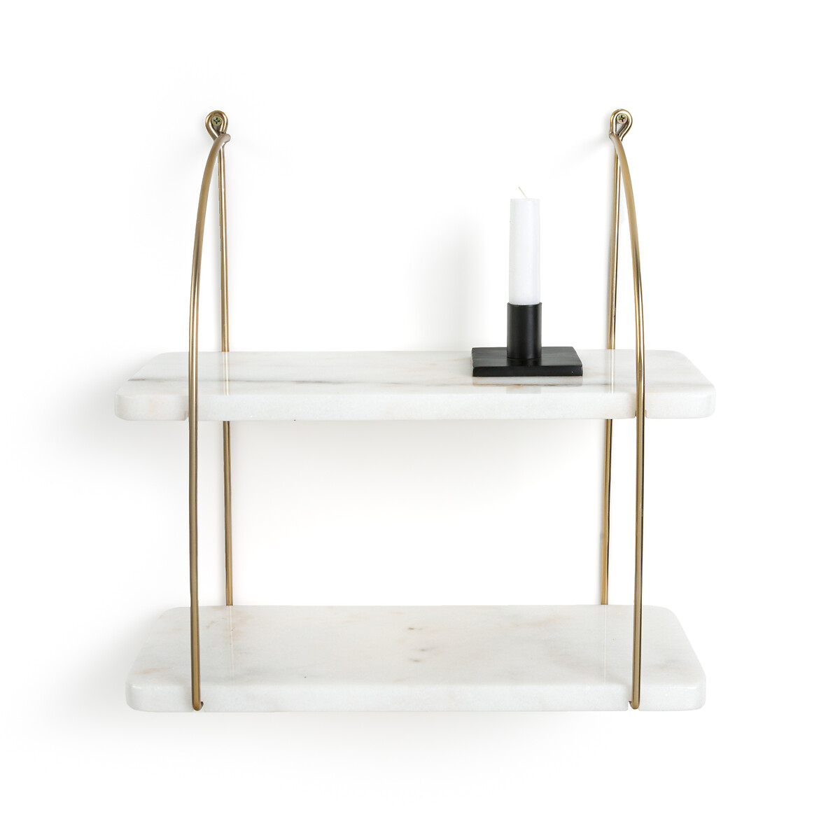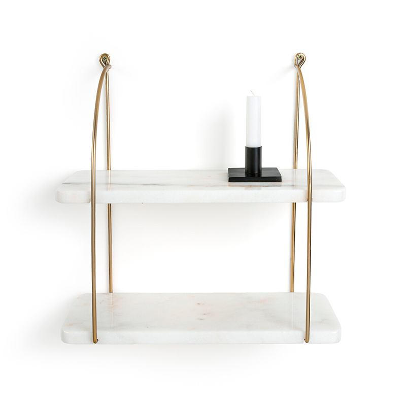 Этажерка настенная из мрамора и латуни Д40см Fitia белый