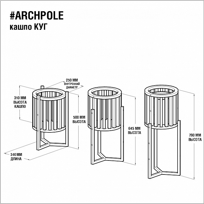 Запросить индивидуальное предложениеПри создании кашпо Куг Archpole и дизайнер Анна Харченко поставили перед собой цель, создать такой предмет, при производстве которого будет решаться проблема обрезков производства. Именно так в дизайне кашпо появились рейки, позволяющие наладить безотходное производство. Кашпо можно регулировать по высоте в 3х положениях, за счет креплений в металле, и это позволяет создавать удивительные композиции из цветов. Кашпо Куг выполнен из натуральных и долговечных материалов: березовой фанеры высшего сорта толщиной 2см покрытой водным лаком и стальной квадраттрубы 2х2см, покрытой порошковой окраской, что позволяет служить ему вечно. На ваш выбор 9 вариантов отделки дерева, что позволит кашпо вписаться в интерьер любого стиля, будь то скандинавский, классический, лофт или минимализм. Изделие поставляется в собранном виде с креплением в нижнем положении кашпо. В комплекте с кашпо идет пластиковый горшок белого цвета, идеально подходящий по дизайну и размеру. В основание встроены пластиковые накладки, которые защитят ваши полы от царапок. Кашпо Куг придуман и производится в ручную в России.