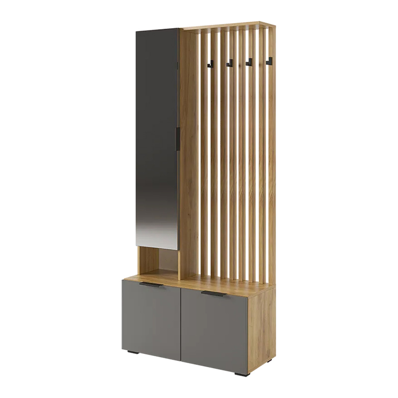 Стильные, трендовые рейки МДФ, акцентные крючки, зеркало, в котором можно себя увидеть в полный рост, полки для мелочей и головных уборов,