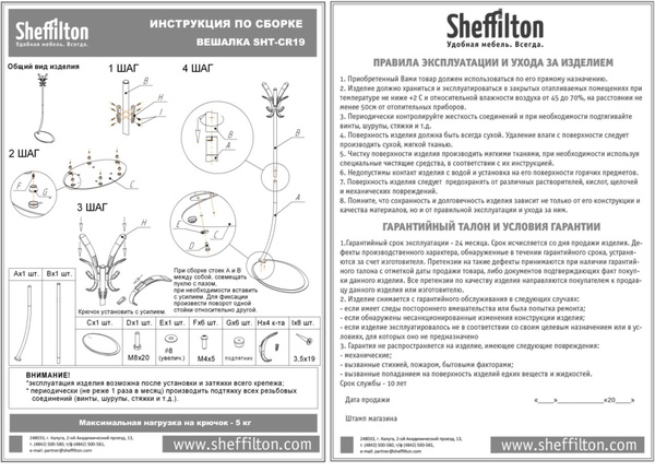 - Максимальная статическая нагрузка на крючок 5 кг;