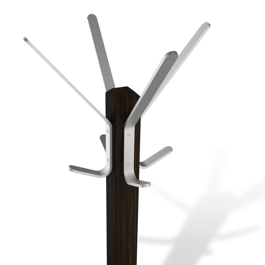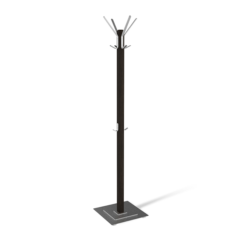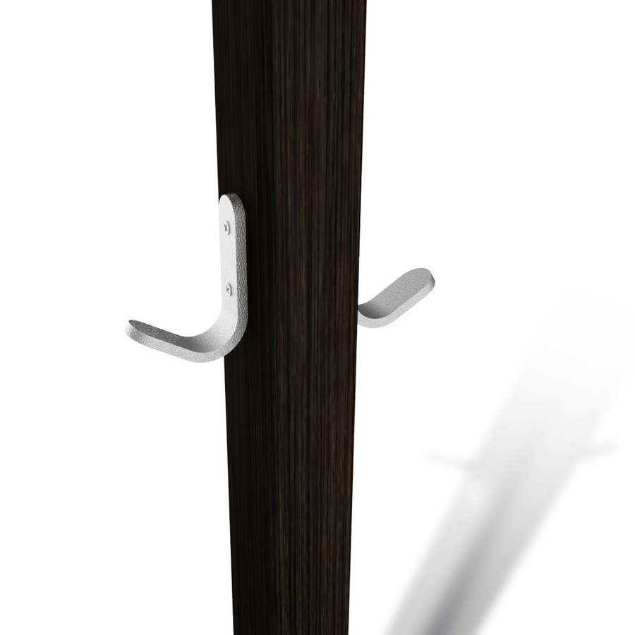 Стойка выполнена из массива древесины, брус толщиной 46х46 мм.; крючки - из металла.