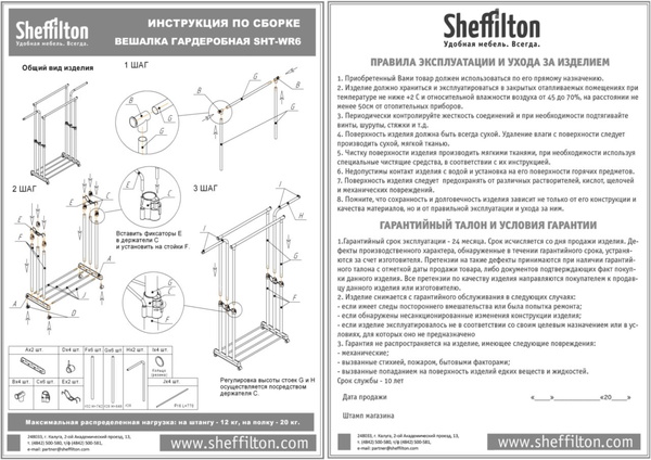 - Максимальная распределенная нагрузка на штангу 16 кг, на крючок 0,6 кг, на полку 20 кг;