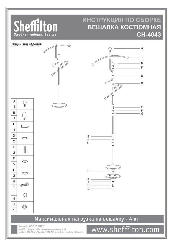 - Максимальная нагрузка на перекладину 2 кг, на вешалку 4 кг;