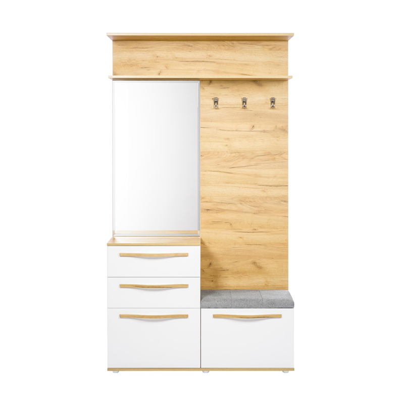 Марта-2 Вешалка комбинированная с зеркалом (Дуб золотой/Белый глянец)