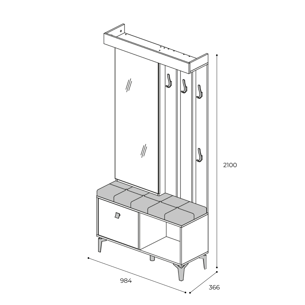 * Корпус выполнен из ЛДСП цвета Артвуд Темный с неповторимым глубоким тиснением и благородным оттенком серебра. * Мягкое сиденье, обшитое плотной мебельной тканью Честер, с декоративной стяжкой. * Высокие массивные металлические опоры. * Лицевая фурнитура с покрытием "Soft-touch" * Серия может быть скомплектована вставными кубами цвета Бордо, Красный, Оранж.Материал: