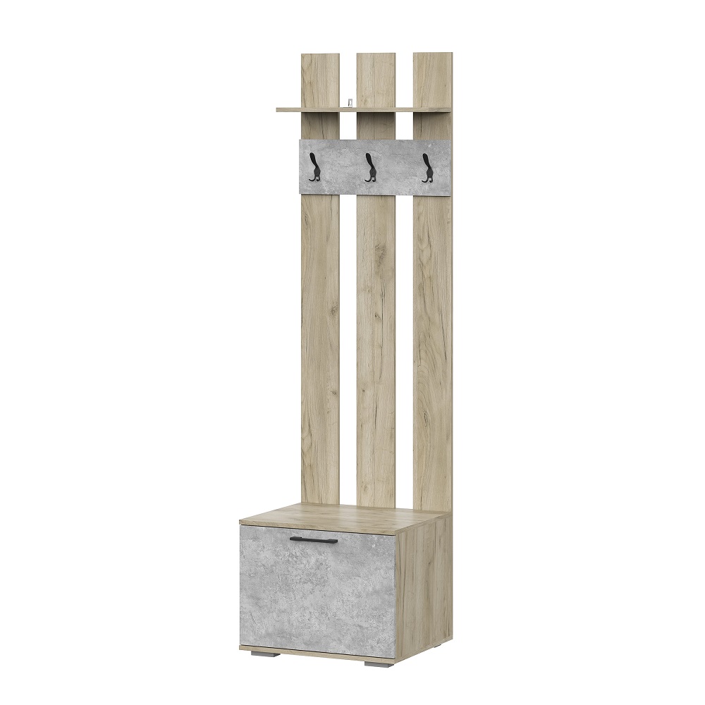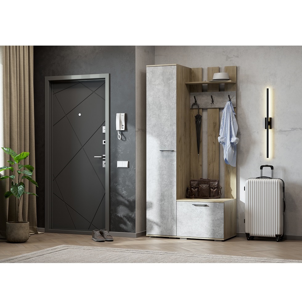 Запросить индивидуальное предложениеВешалка и пенал Бостон выполнены в стиле лофт и благодаря компактным габаритам поместятся в любой по площади входной зоне. Пенал оснащен полками. В комплект входят (ШхГхВ): - Шкаф-пенал Бостон ШК-400 (40х50х50) - Вешалка Бостон ВШ-2 (60х60х212) Особенности корпус и фасад из ЛДСП в декоре дуб крафт серый/бетонный камень пластиковые ручки фасад напольной тумбы на газ-лифтах – открывается вниз крючки металлические рекомендуется обязательное крепление к стене (крепления в комплекте)