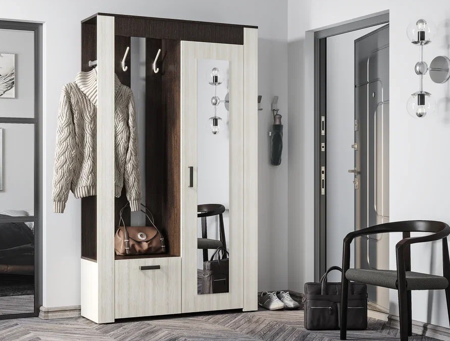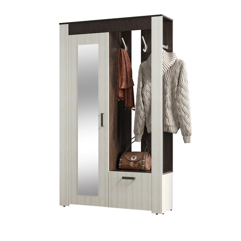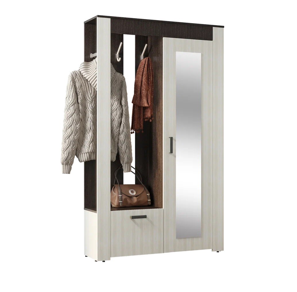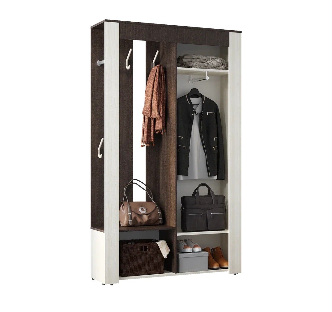 Запросить индивидуальное предложениеПрихожая Франк - универсальное решение для организации хранения во входной зоне. Компактный шкаф со штангой и полками, тумба с отсеком под обувь и открытая вешалка позволят Вам с комфортом разместить верхнюю одежду, обувь,аксессуары, сумки и мелкие вещи и содержать их в порядке. Сочетание венге и лоредо делает прихожую Франк практичной: модуль будет идеально смотреться как в классическом, так и в современном интерьере.