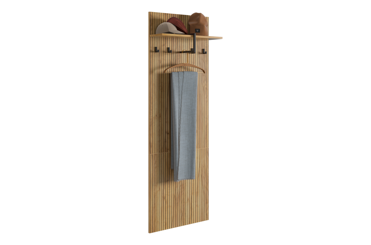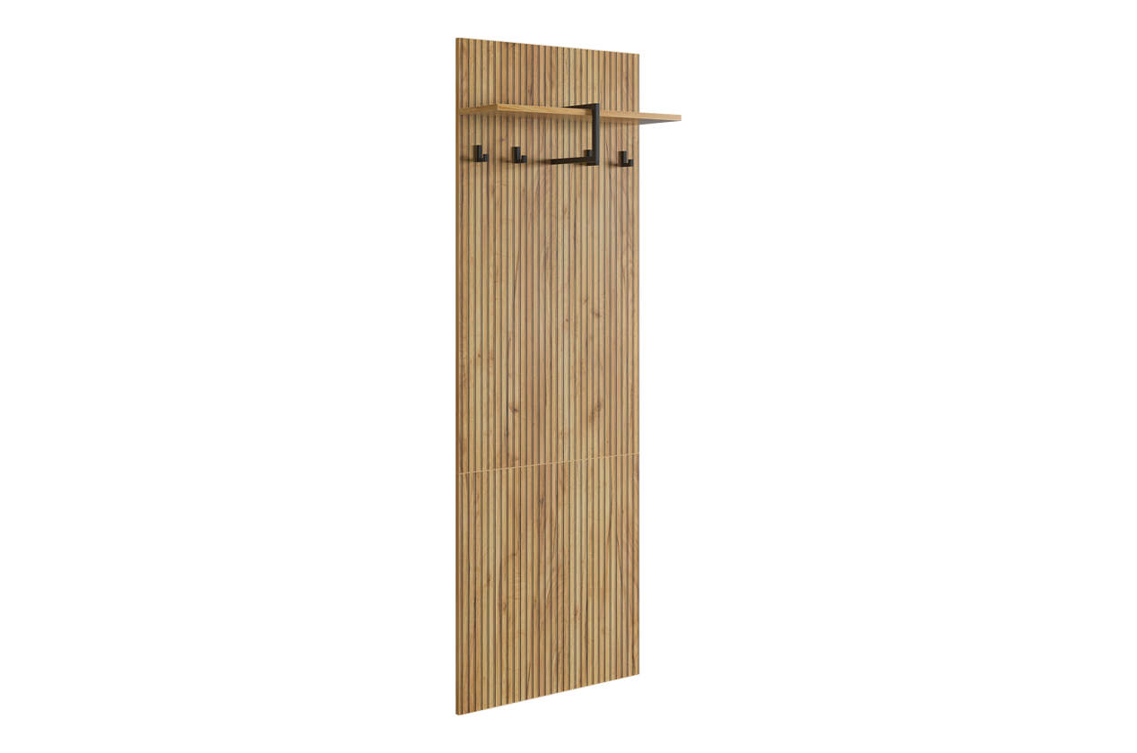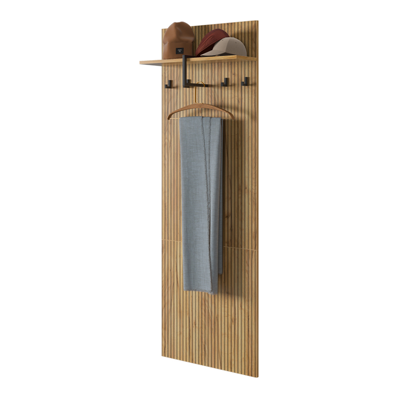 Принт, имитирующий вертикальную фрезеровку придает вешалке уникальный и современный вид, добавляя текстуру и глубину. Материал вешалки – ЛДСП, что обеспечивает прочность и долговечность, а также легкость в уходе.