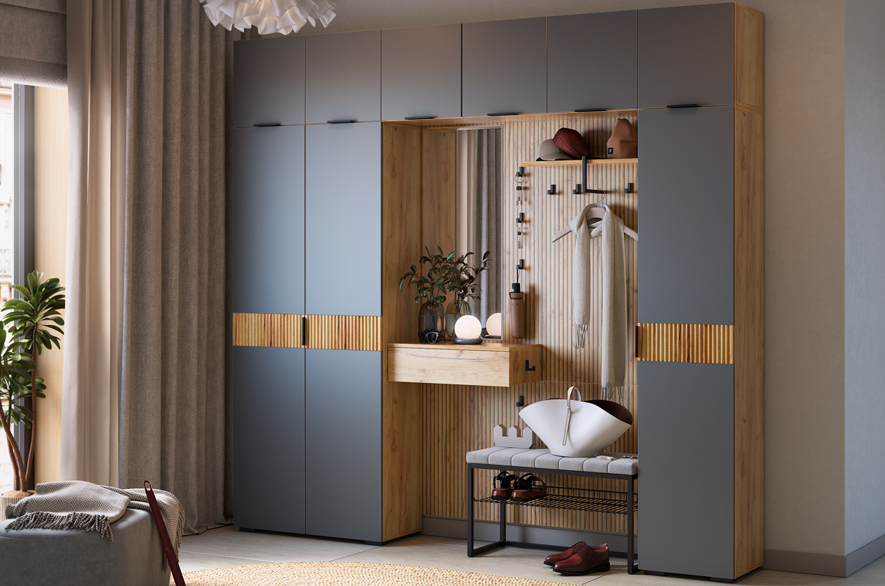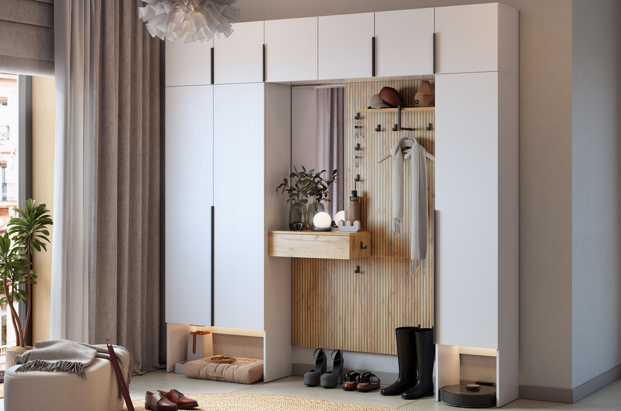 Крючи предоставляют удобное место для хранения верхней одежды, сумок или аксессуаров. Держатель для плечиков позволяет организовать хранение одежды, сохраняя ее в идеальном состоянии. Полка служит дополнительным пространством для хранения головных уборов.