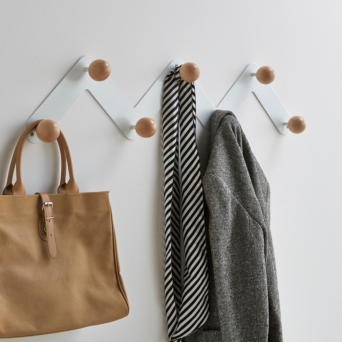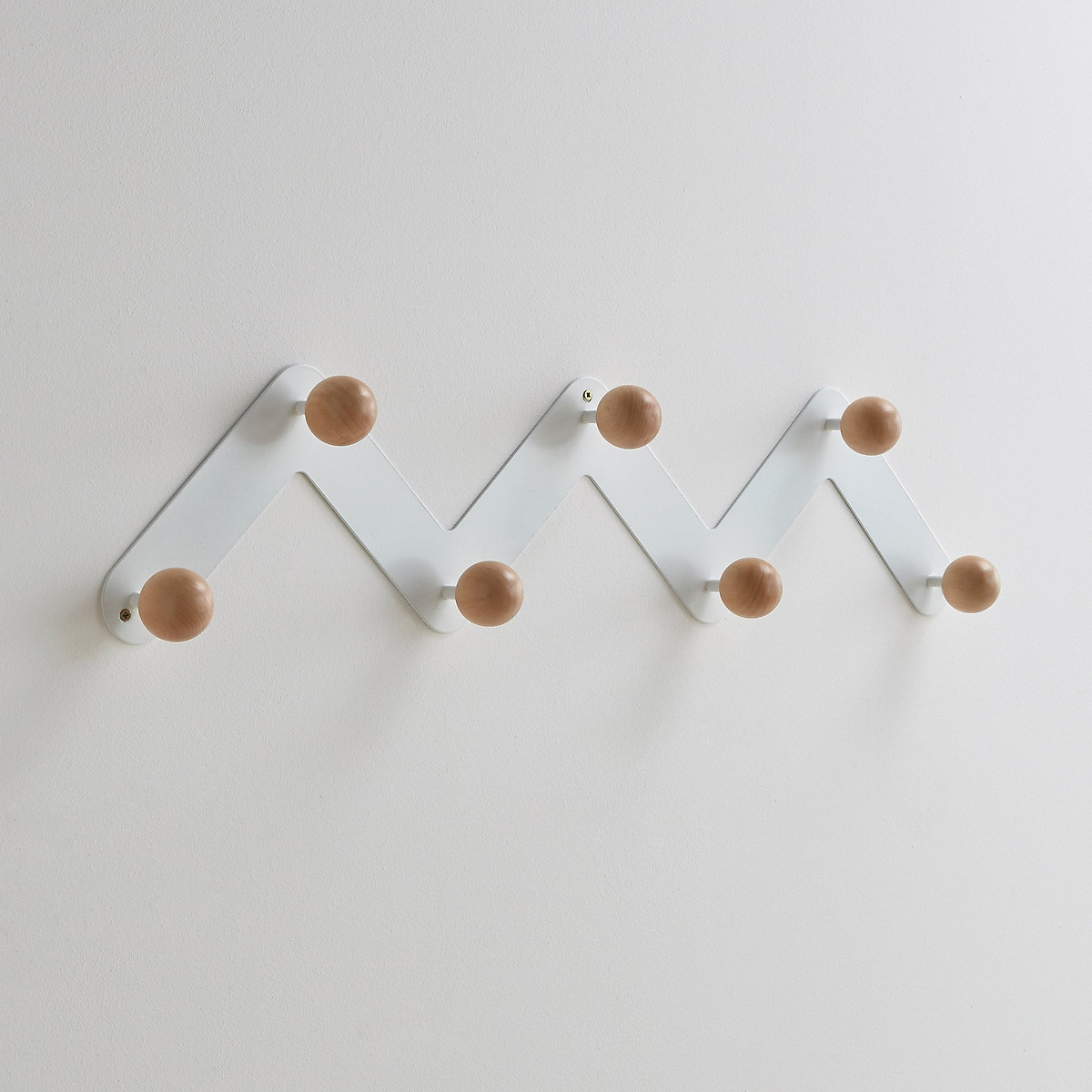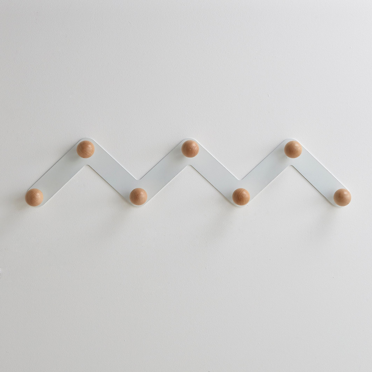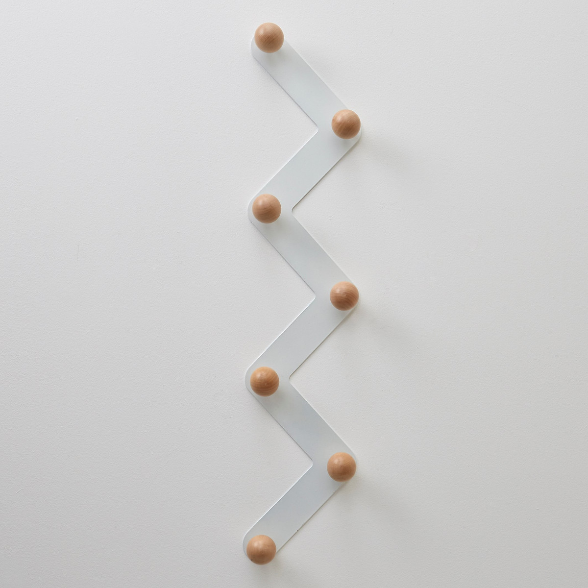 Запросить индивидуальное предложениеВешалка настенная AGAMA на металлическом суппорте зигзагообразной формы для размещения любых вещей. 7 круглых держателей из натурального дерева (береза) на металлическом каркасе черного или белого цвета.