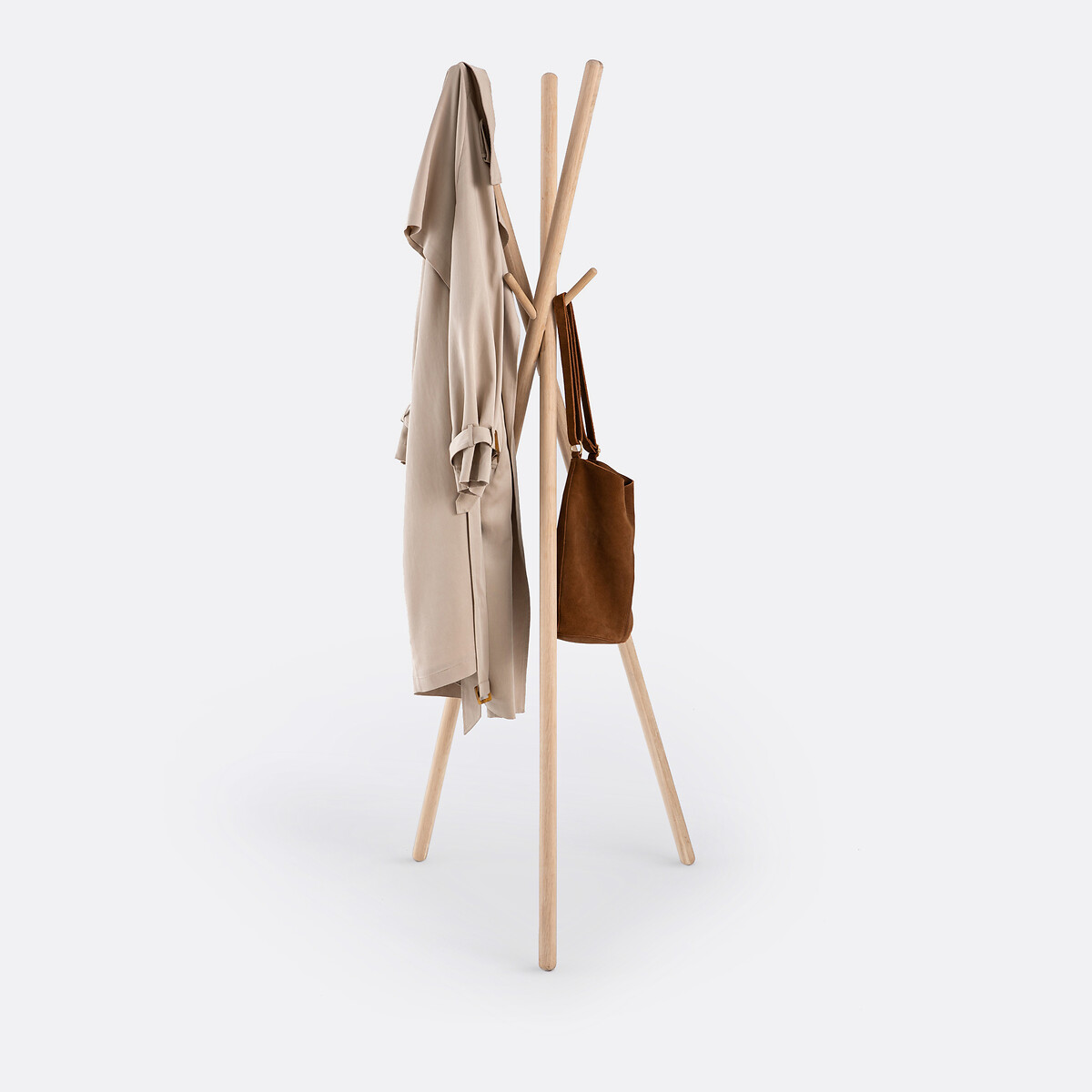Запросить индивидуальное предложениеВешалка Compo. Вешалка из массива дуба FSC в форме треножника оригинального дизайна, на которую можно повесить пальто или одежду в коридоре или спальне.