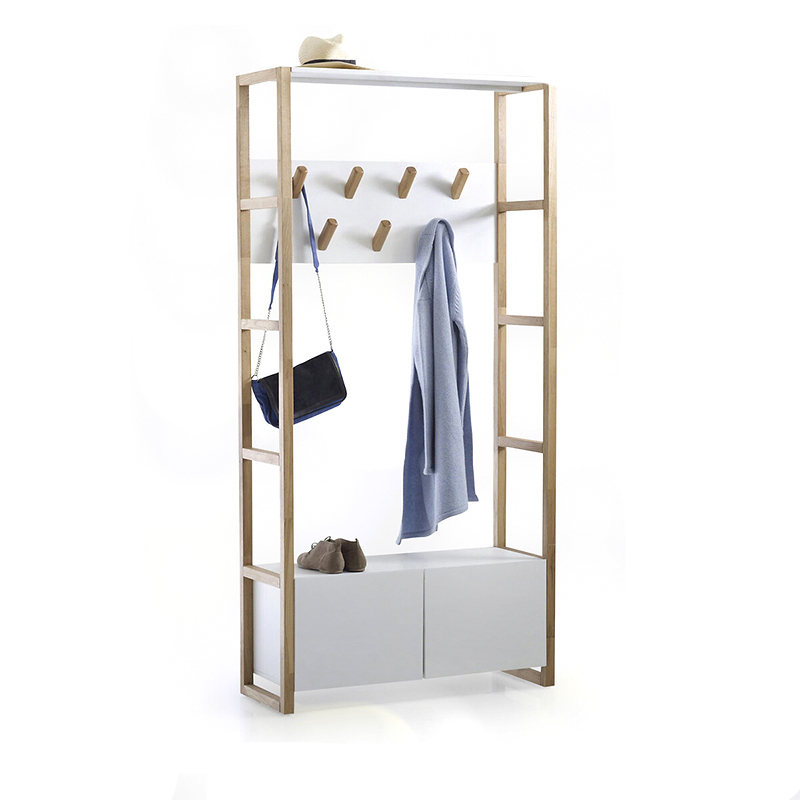 • Отсек для обуви, полки и дверцы из лакированной МДФ с отделкой нитроцеллюлозным лаком.