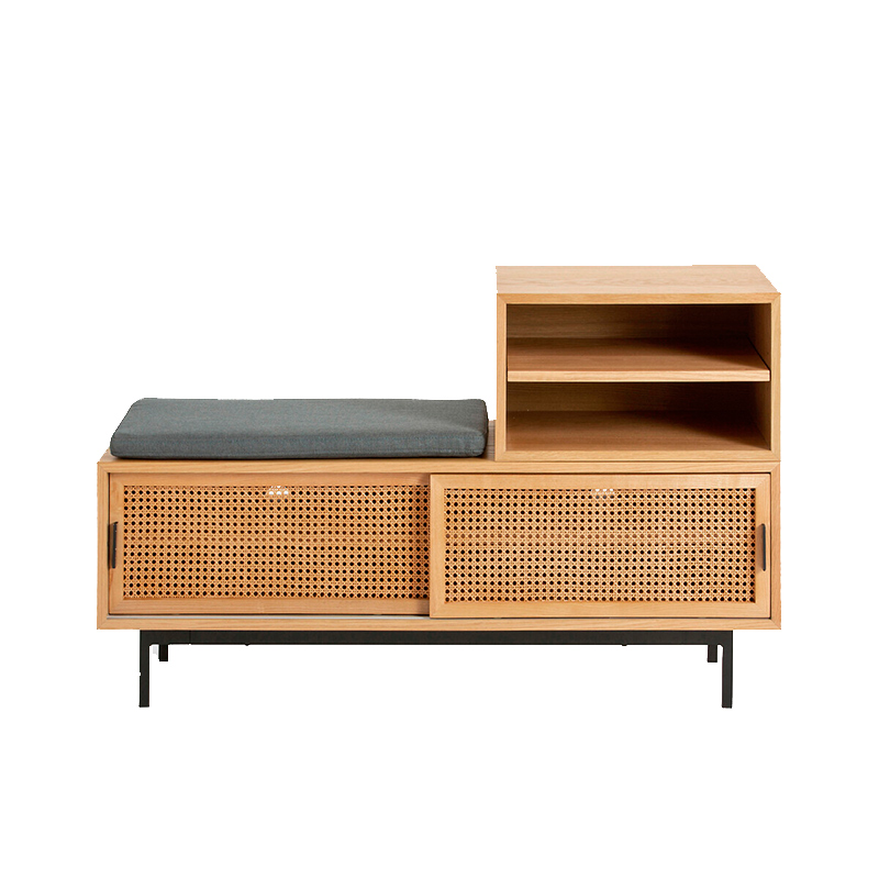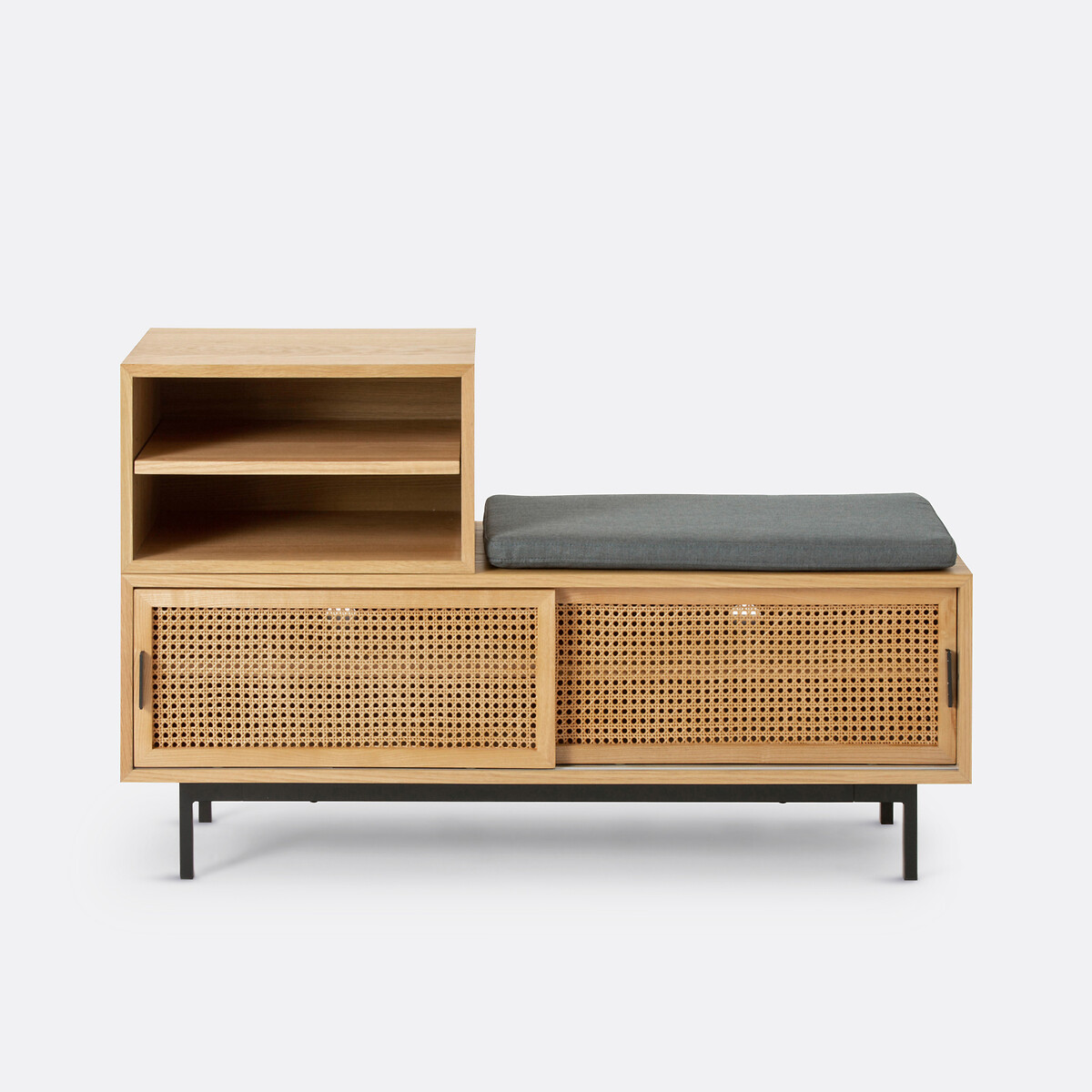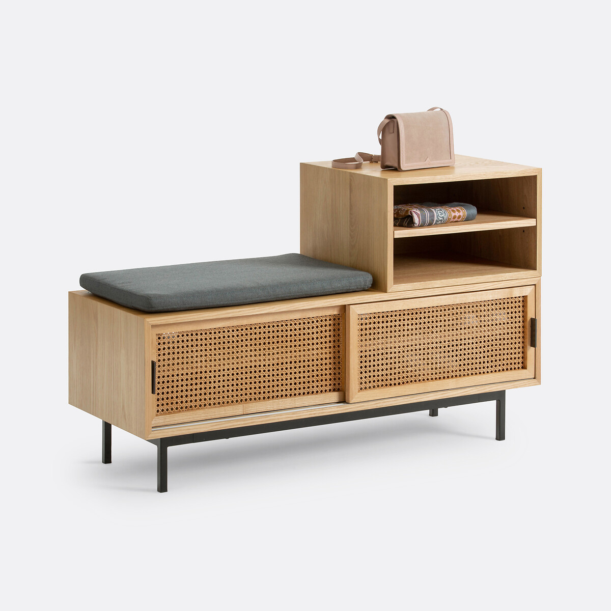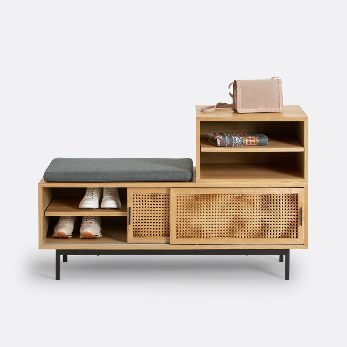 Банкетка для прихожей из шпонированного дуба и тростникового плетения WASKA