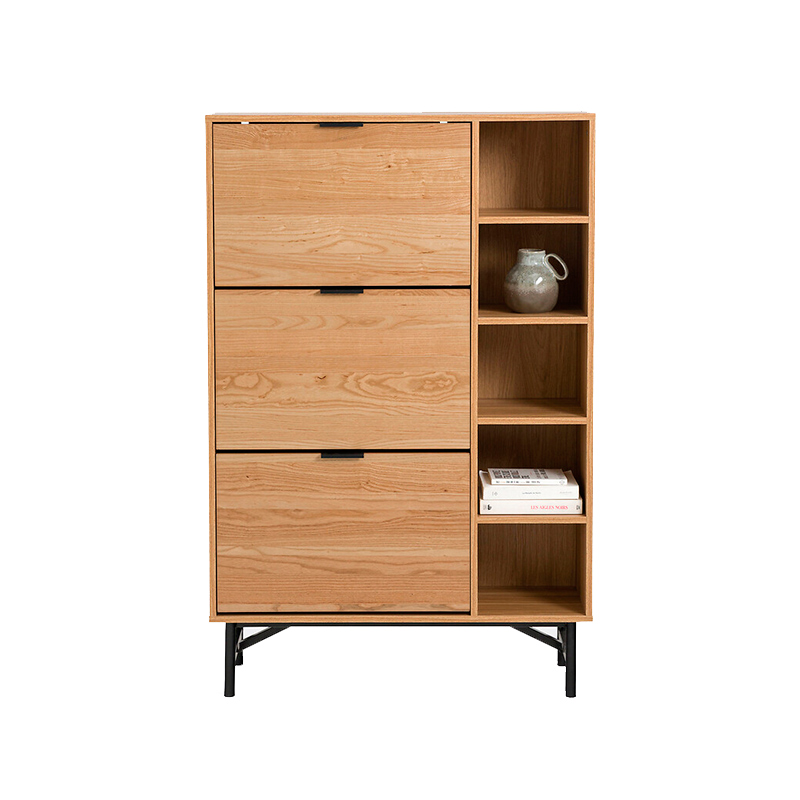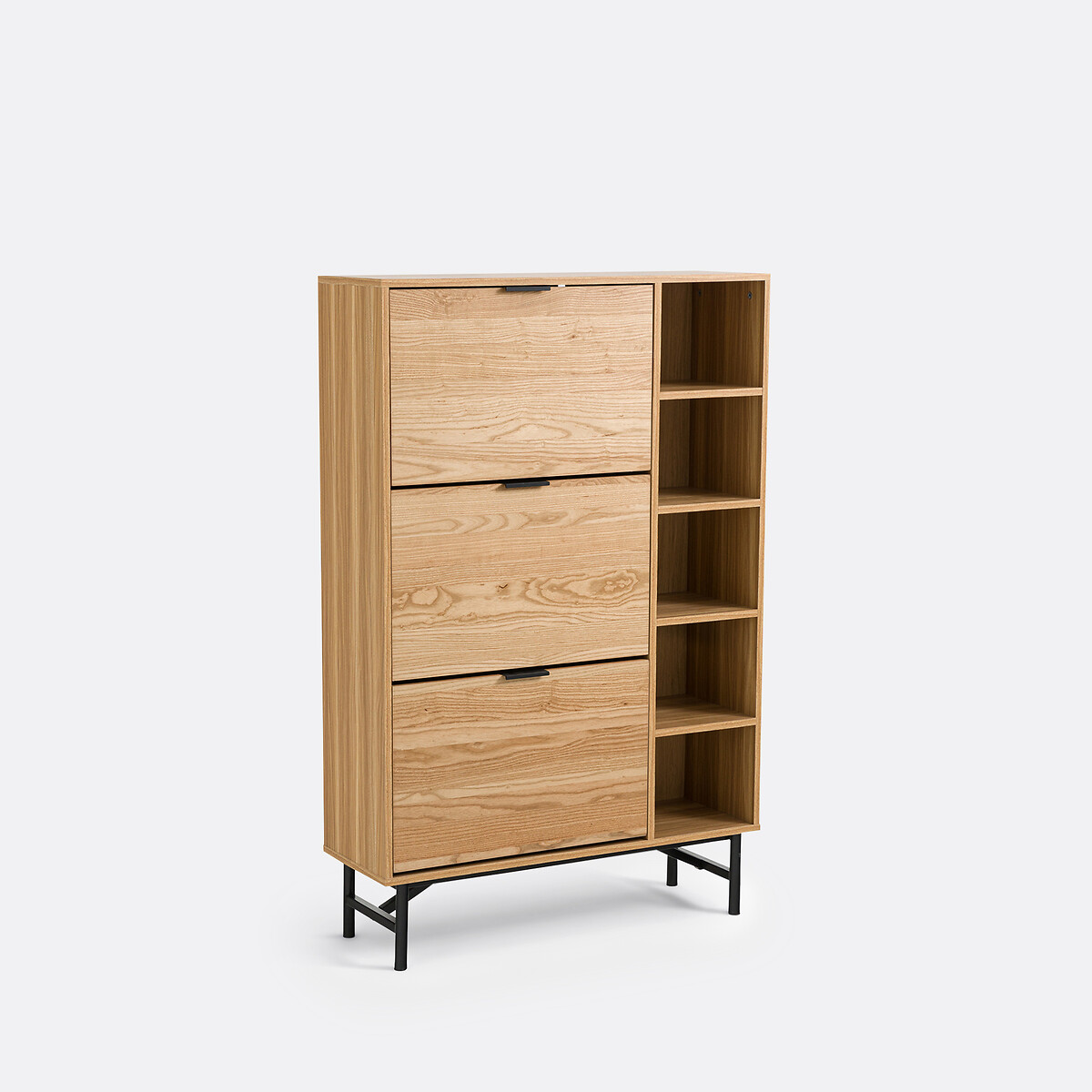 • 5 ниш справа и 3 откидные дверки из МДФ шпон ясеня слева