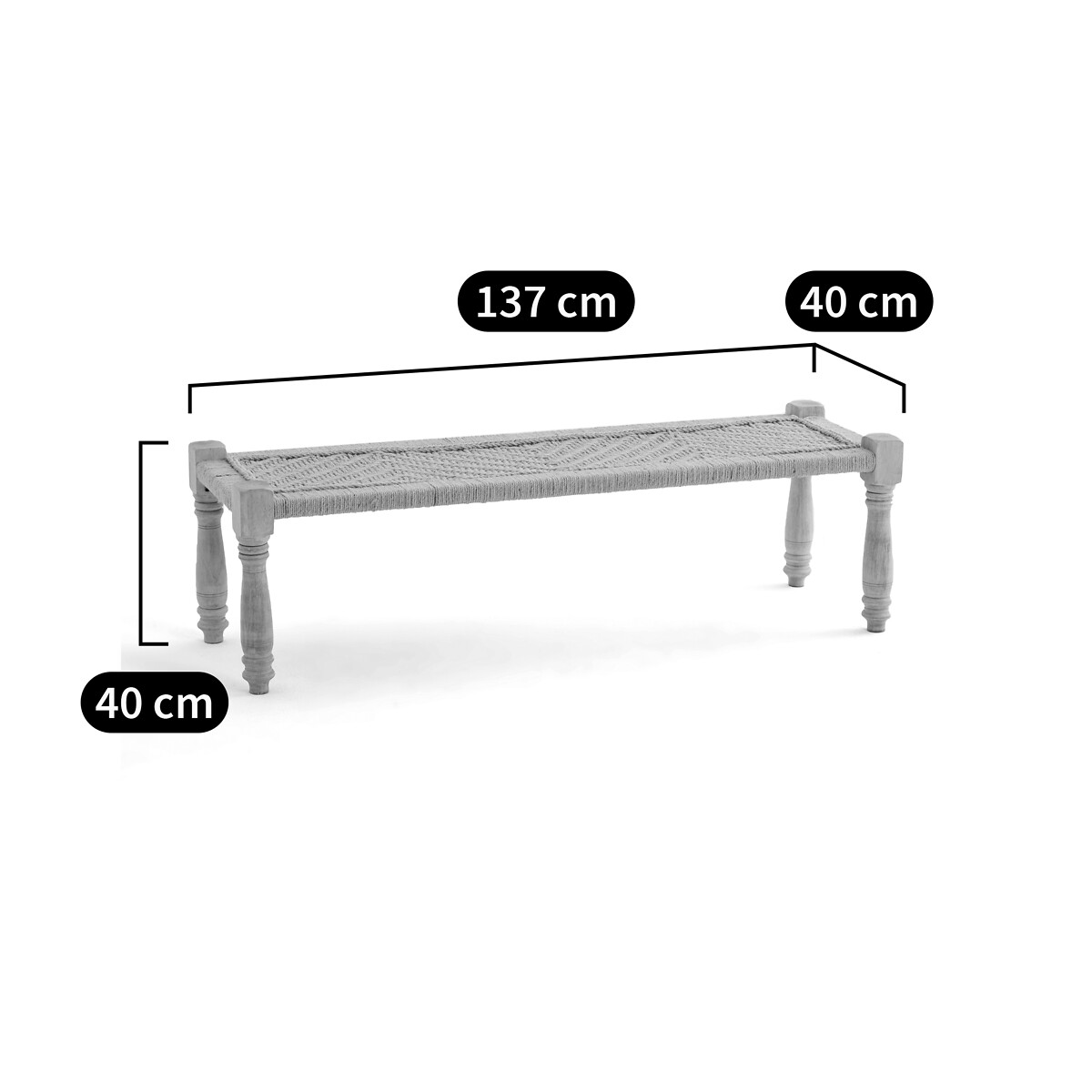 Скамья в индийском стиле Adas из веревки и мангового дерева