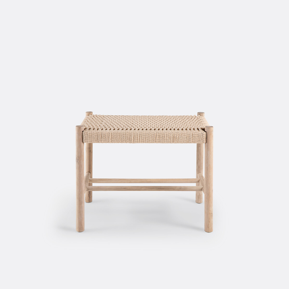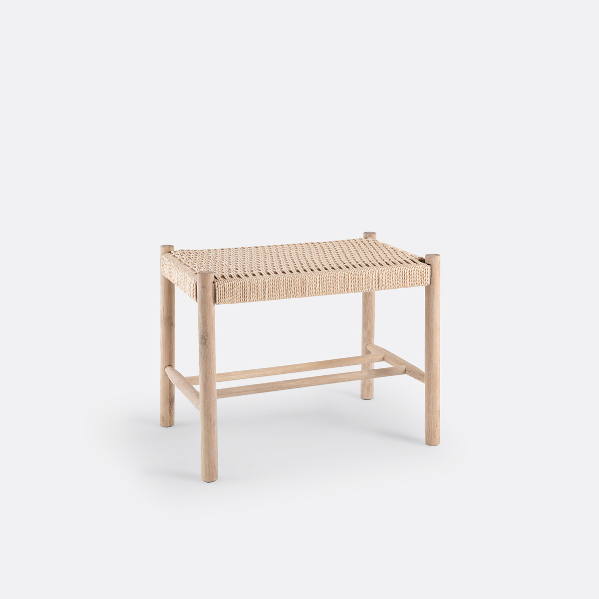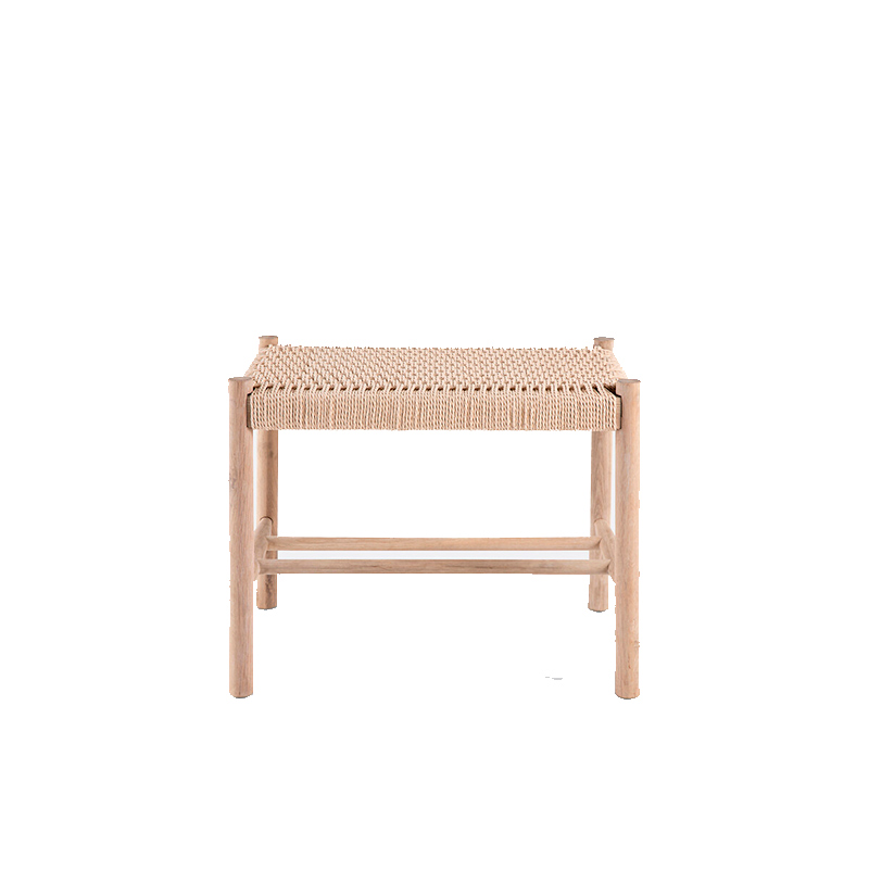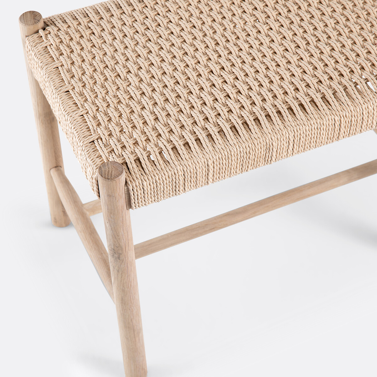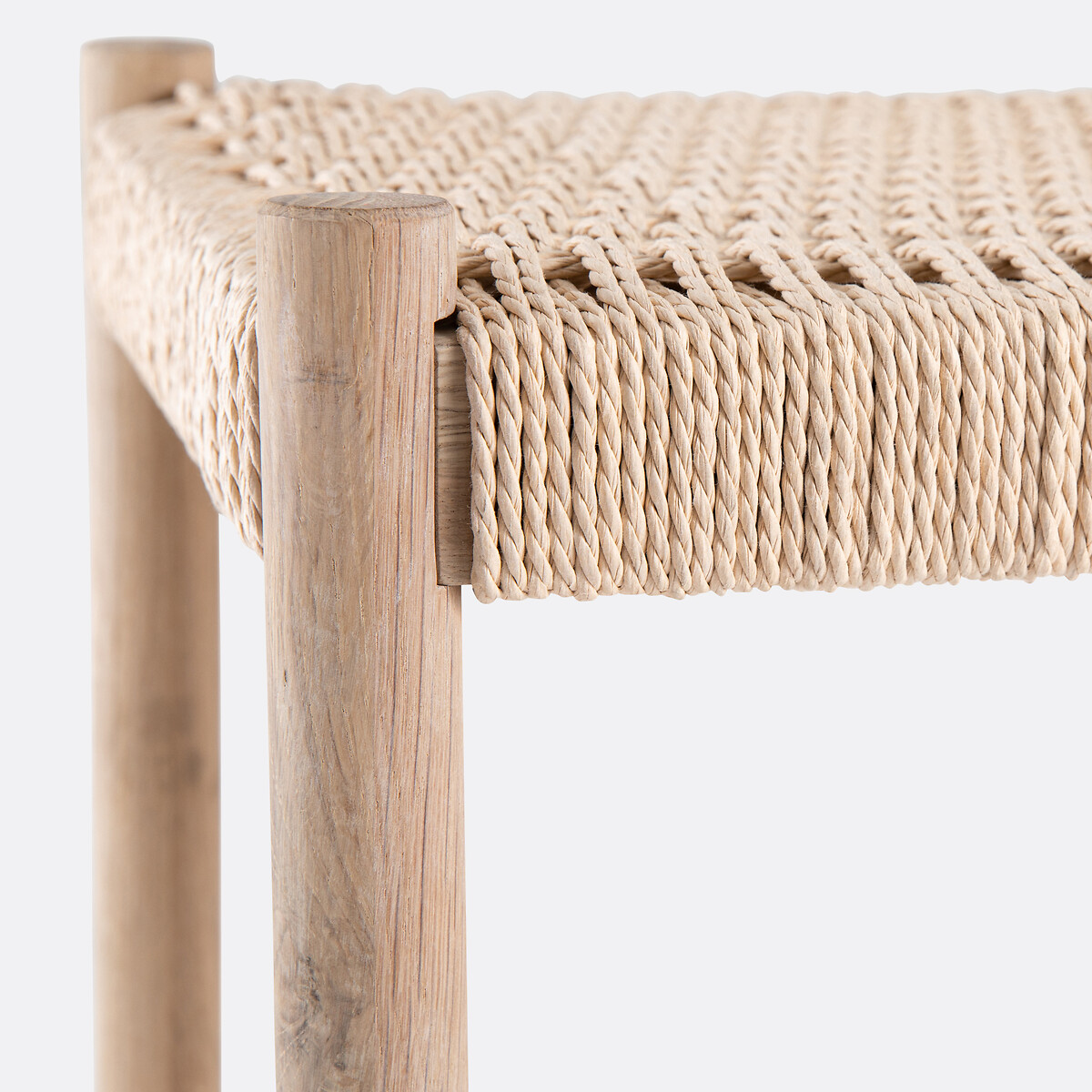 • Каркас из массива дуба с отделкой под беленое дерево и сиденье из веревки натурального цвета