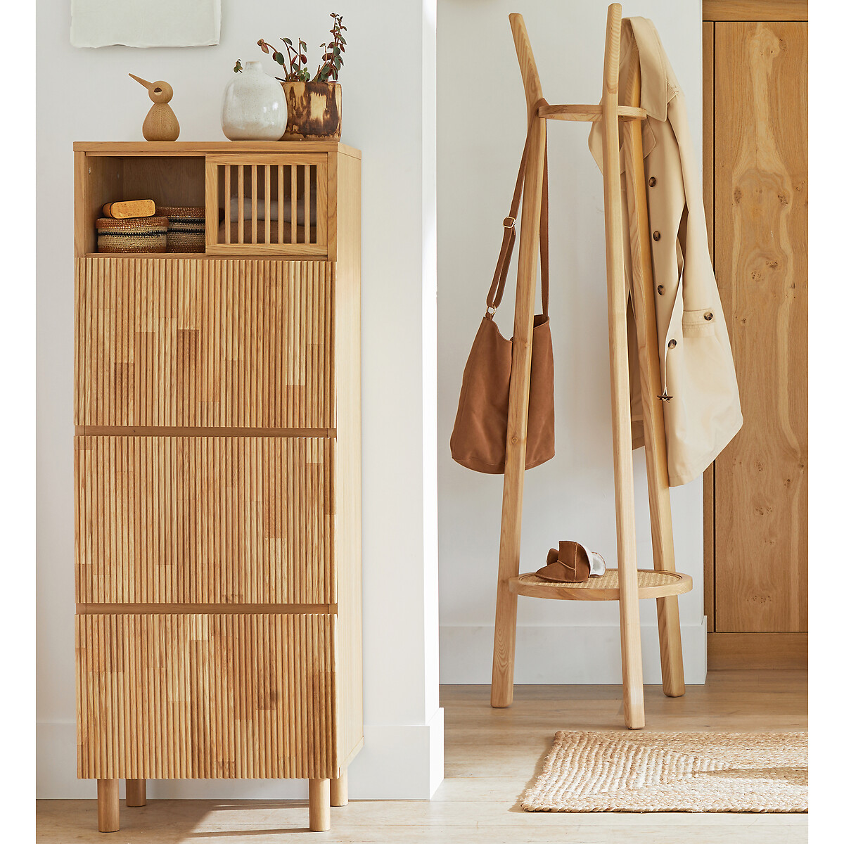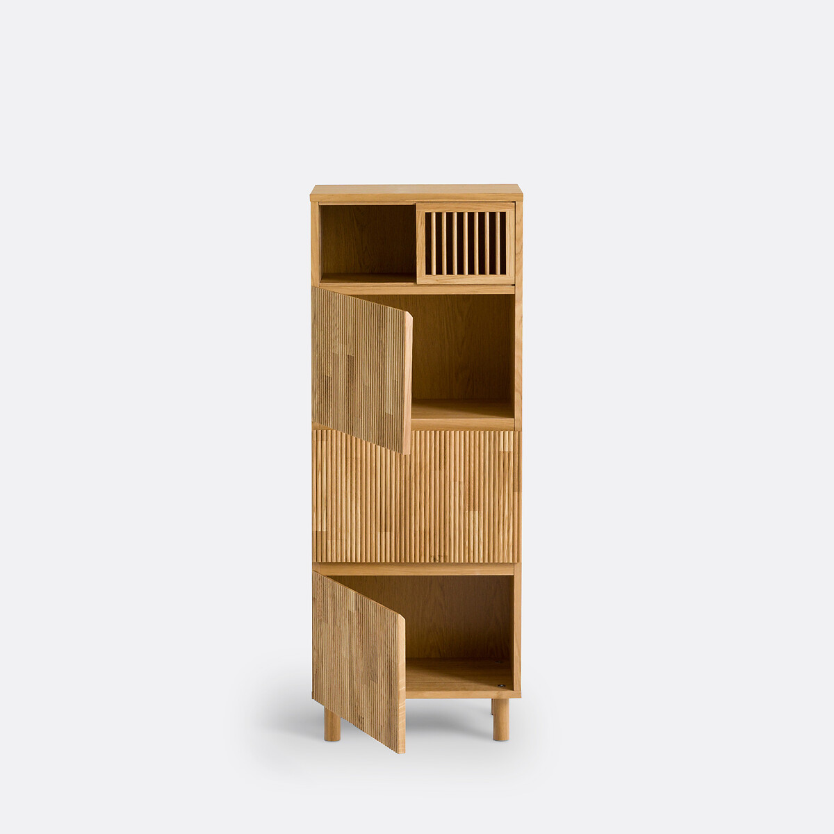 • Фасады трех дверок из полукруглых бороздок из массива дуба