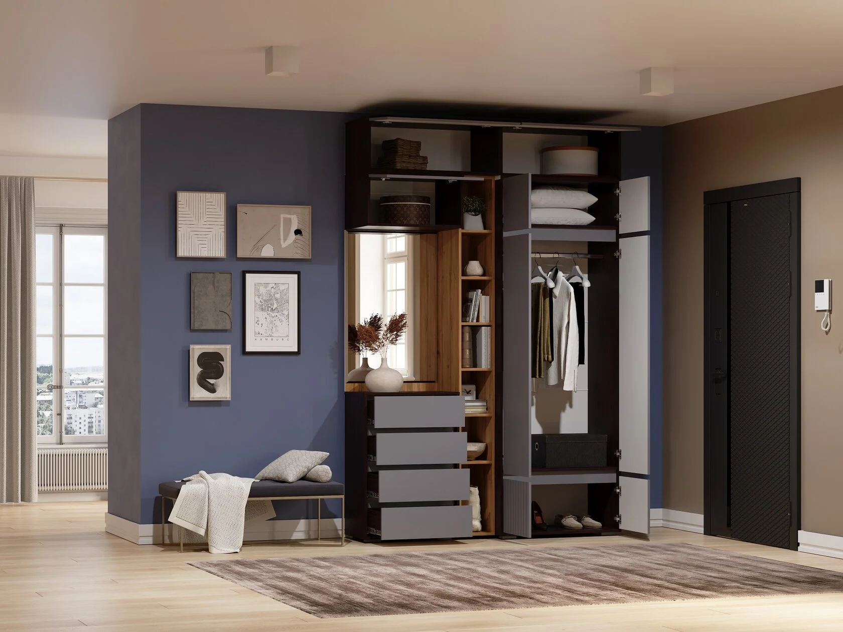 Готовая прихожая Роут с зеркалом венге / дуб вотан / графит софт
