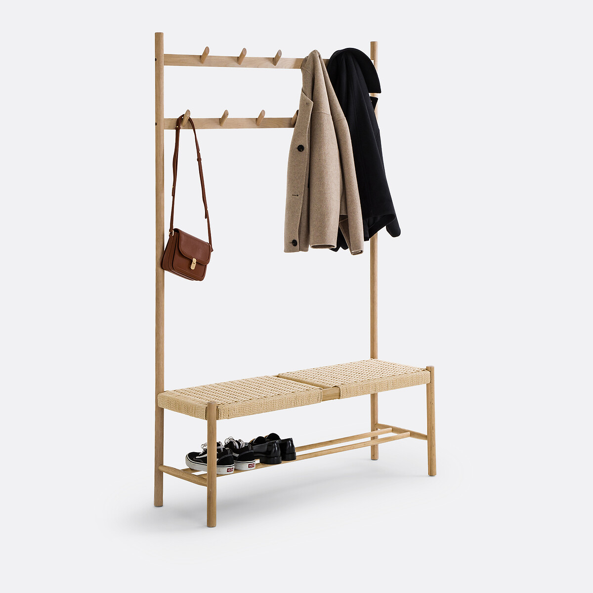 Гардероб из массива дуба и плетеной веревки Taga бежевый