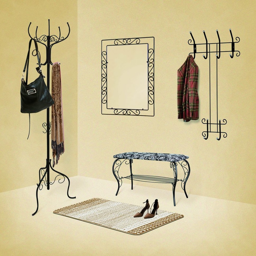 Вешалка выполнена из металла, диаметром 10 мм, проволки 5 мм и пластиковой фурнитуры.