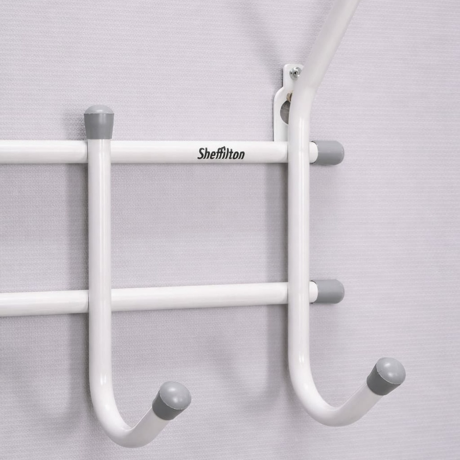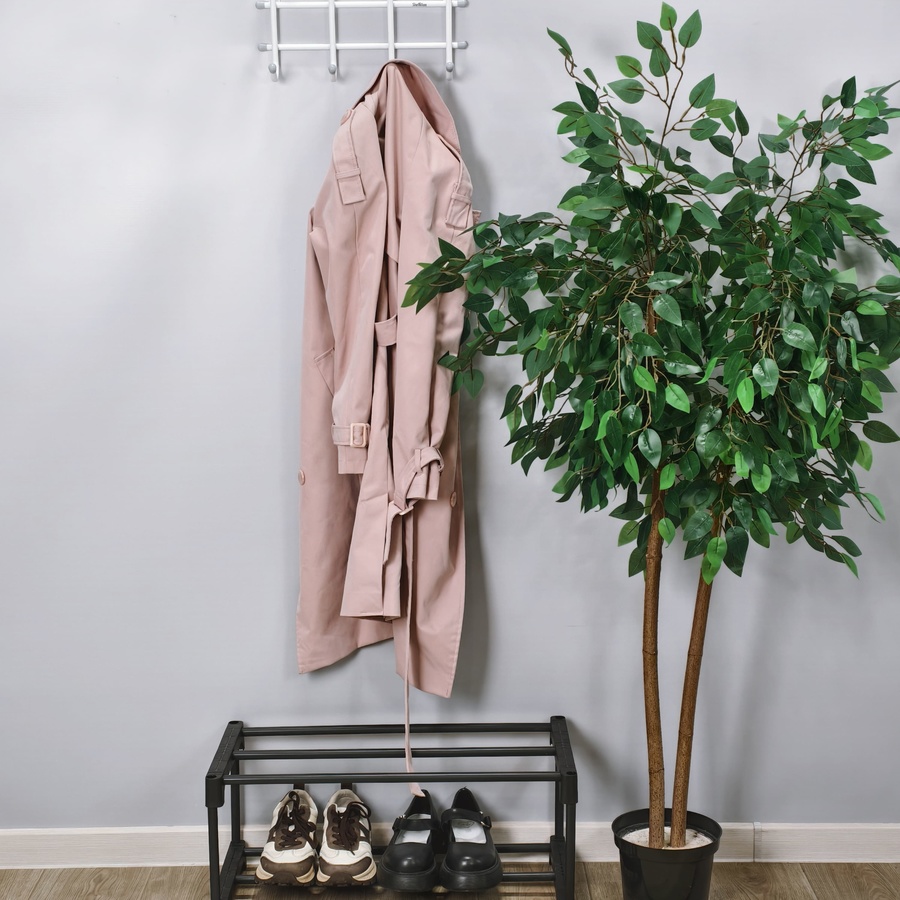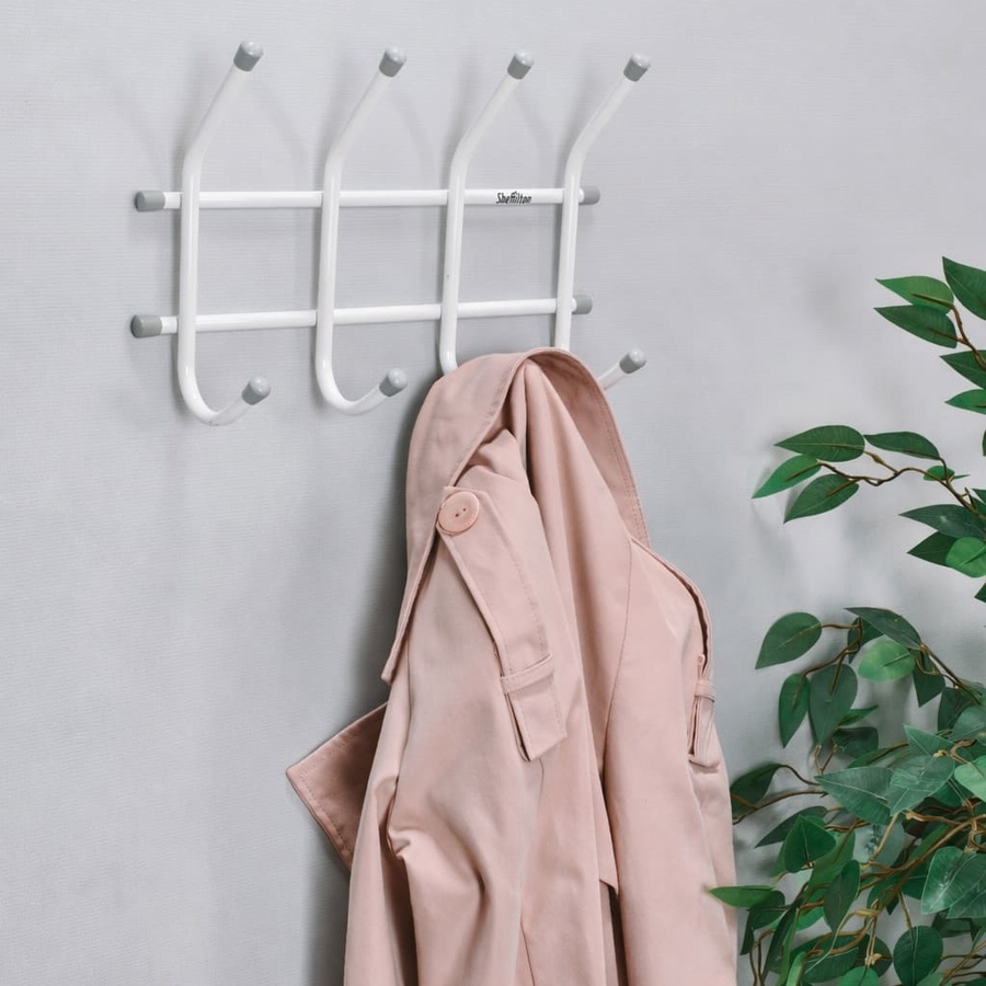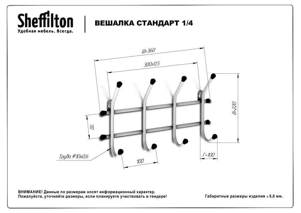 Вешалка выполнена из металлической трубы 10 мм. и пластиковой фурнитуры 12 мм.