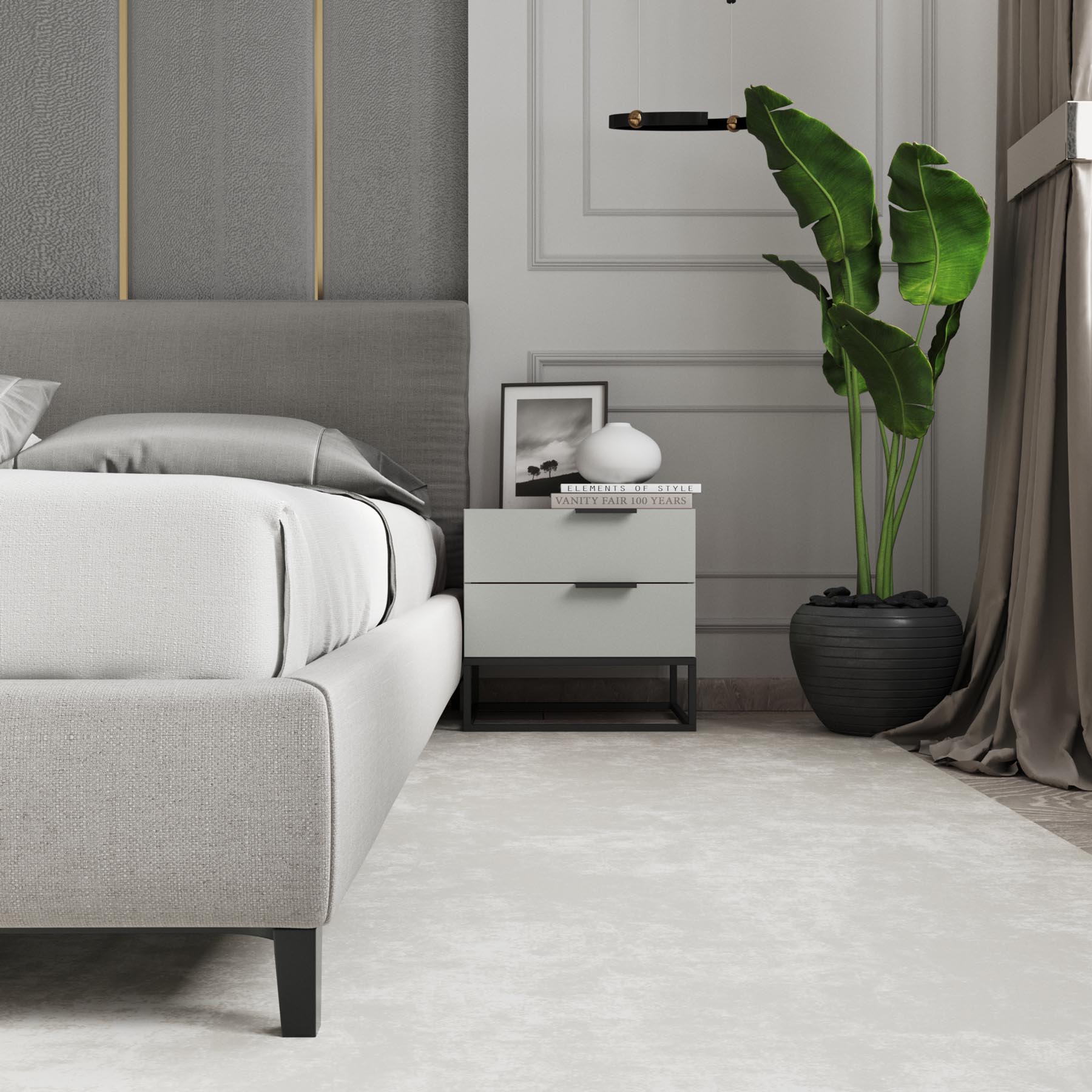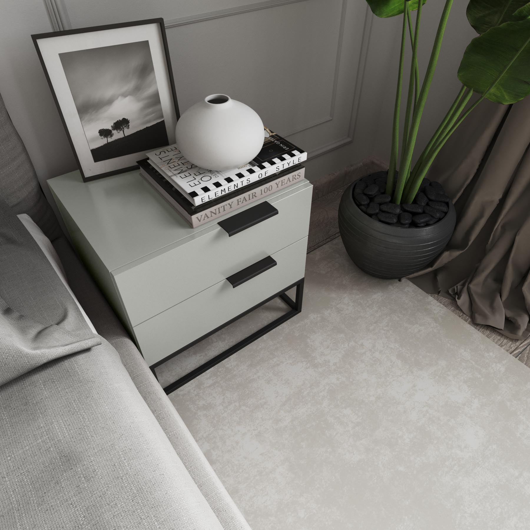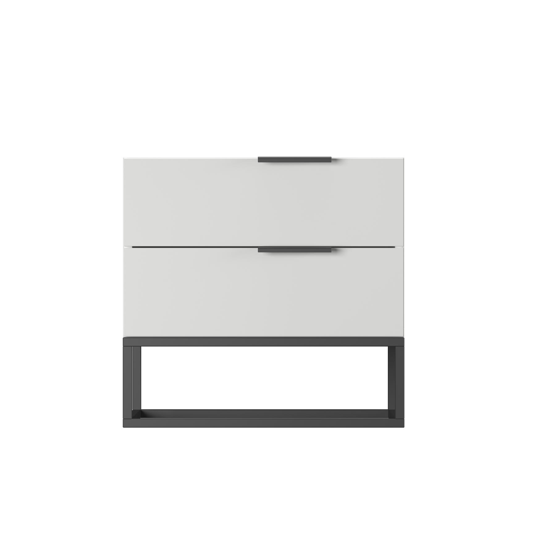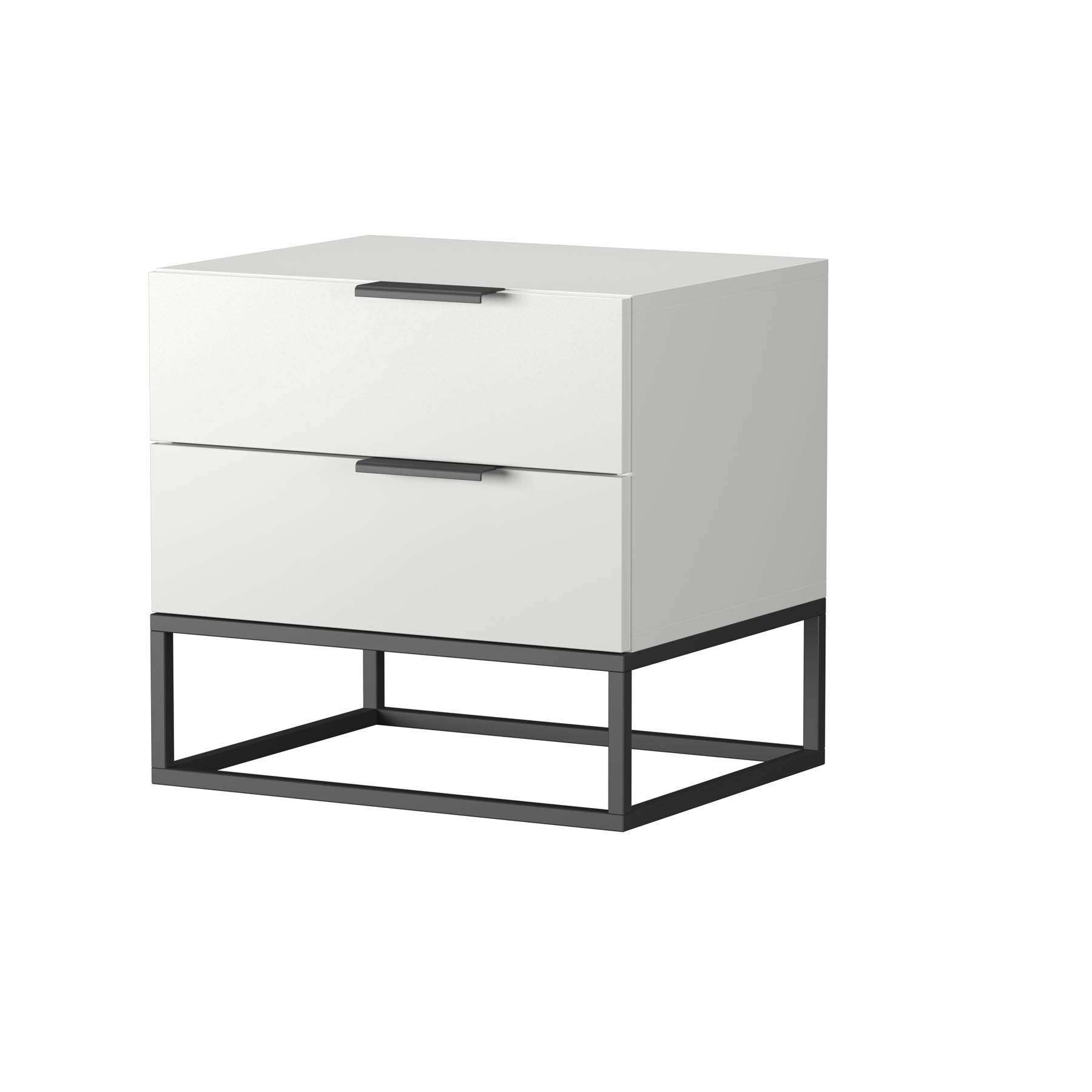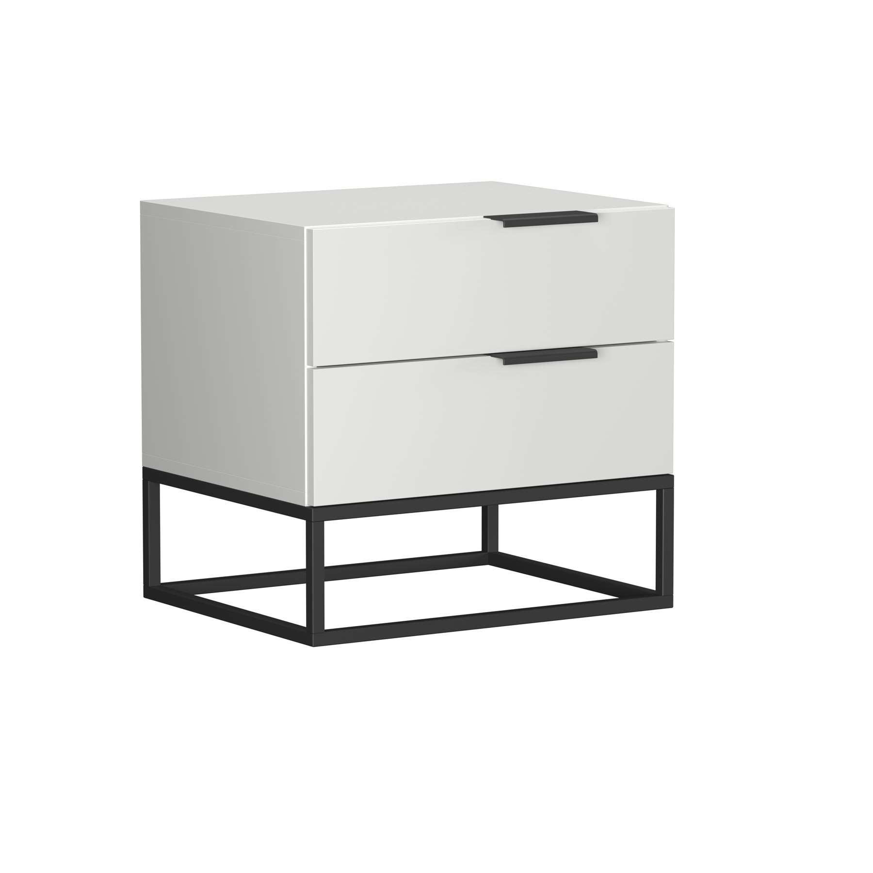 Держите под рукой все необходимое с помощью этой тумбочки современного дизайна. Изготовленная из искусственного дерева с блестящим или матовым лаком, эта тумбочка будет отлично смотреться в вашей спальне независимо от цветовой гаммы. Его металлическая основа с черной отделкой имеет открытый прямоугольный дизайн, придающий силуэту четкую линию. Два выдвижных ящика дают вам различные варианты хранения чего угодно. Тонкие металлические ручки на верхней правой стороне выдвижных ящиков придают им стильный асимметричный вид. Сборка проста – все, что вам нужно сделать, это прикрепить основание.