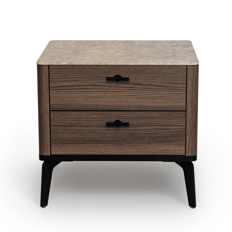 Тумба выполнена из МДФ облицованным инновационным материалом с имитацией шпона. Имеет ярко выраженную текстуру и глубокий древесный рисунок. Ящики в отделке текстиль украшают внутреннее пространство тумбы. Качественная, скрытая система выдвижения придаёт легкость и комфорт при использовании. Топ выполнен из искусственного камня, повторяющего природный рисунок мрамора. Мягкая, обтекаемая форма легко вольется в Ваш интерьер и сделает его уютным и стильным.