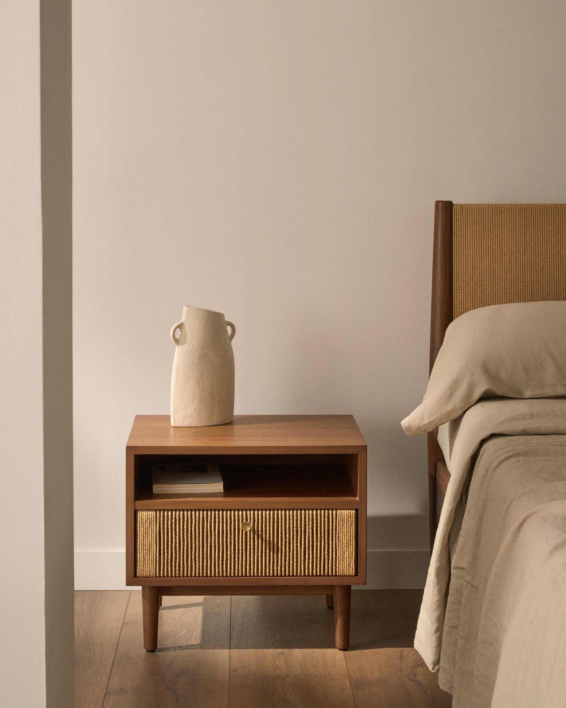 Прикроватная тумбочка Elan из шпона и массива ореха со шнуром