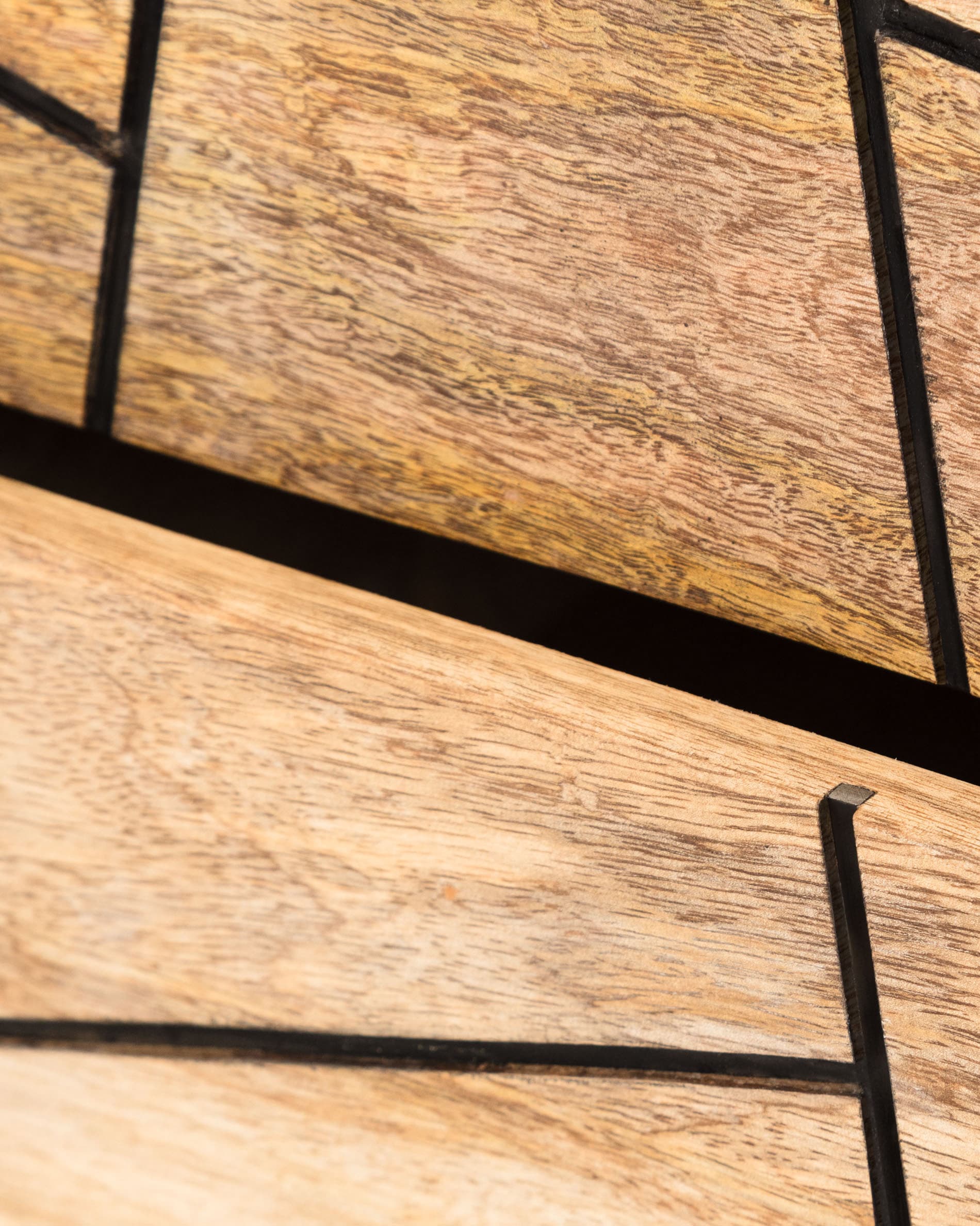 Запросить индивидуальное предложениеКаркас прикроватной тумбы Balia изготовлен из массива натурального дерева манго. Она сделана вручную, включая декоративные металлические детали, встроенные в ящики. Ножки тоже металлические и имеют такое же матово-черное покрытие. Каждый Balia уникален благодаря текстуре дерева. Если вам нужен эксклюзивный предмет мебели, вы его нашли. Цвета отделки указываются в соответствии с каталогом производителя. Допускается незначительное отклонение в цвете, обусловленное техническими особенностями цветопередачи фотографий.