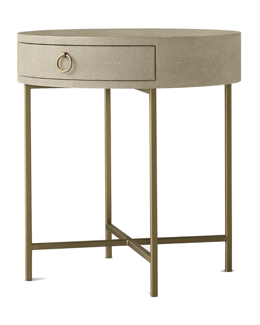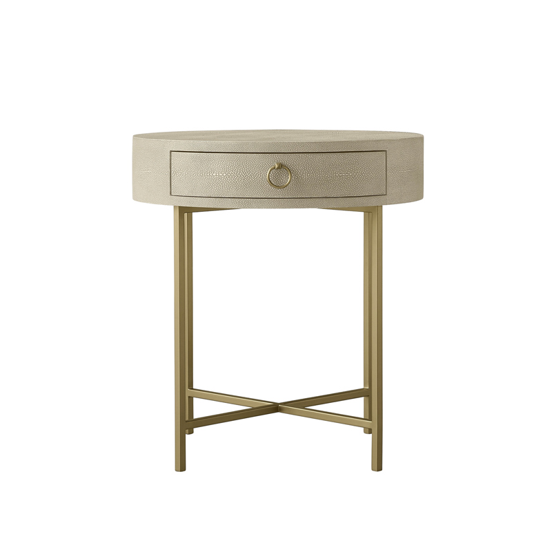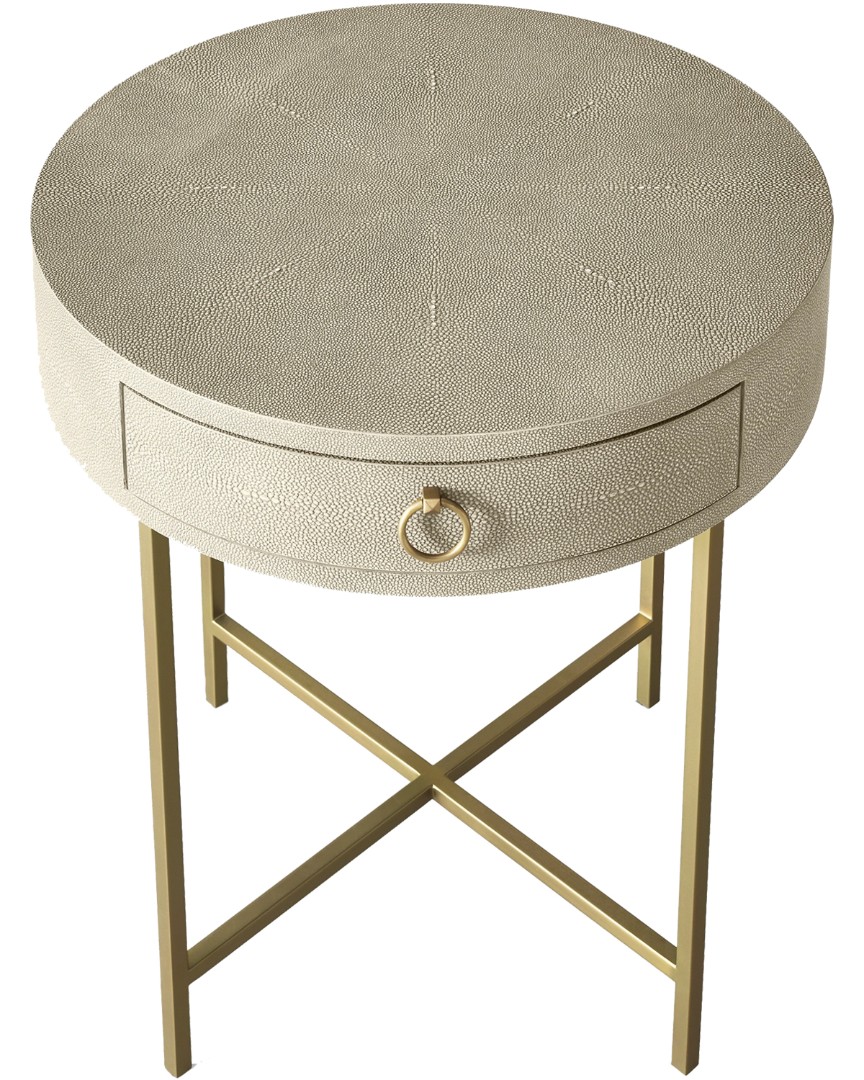 Запросить индивидуальное предложениеПрикроватная тумба “Айрин” – стильное и элегантное решение для вашей спальни. Ее сдержанные формы и изысканные детали делают ее идеальным дополнением к любому интерьеру. Тумба имеет круглую столешницу, которая целиком отделана бежевой кожей с точным воспроизведением текстуры и рисунка натуральной шкуры ската. Это добавляет изделию оригинальности и вневременного стиля. Ножки в тёплой цветовой гамме – латунь, придают тумбе изысканный и завершающий штрих. Эта тумба не только эстетически привлекательна, но и функциональна. Она предлагает удобное пространство для хранения рядом с вашей кроватью. Вы можете разместить на ней светильник, будильник, книгу или другие предметы, которые вы хотите иметь под рукой во время сна или перед сном. Прикроватная тумба “Айрин” также будет идеально сочетается с другими предметами мебели в вашей спальне. Ее нейтральный цвет и классический дизайн позволяют легко интегрировать ее в любой интерьерный стиль.