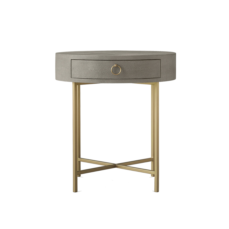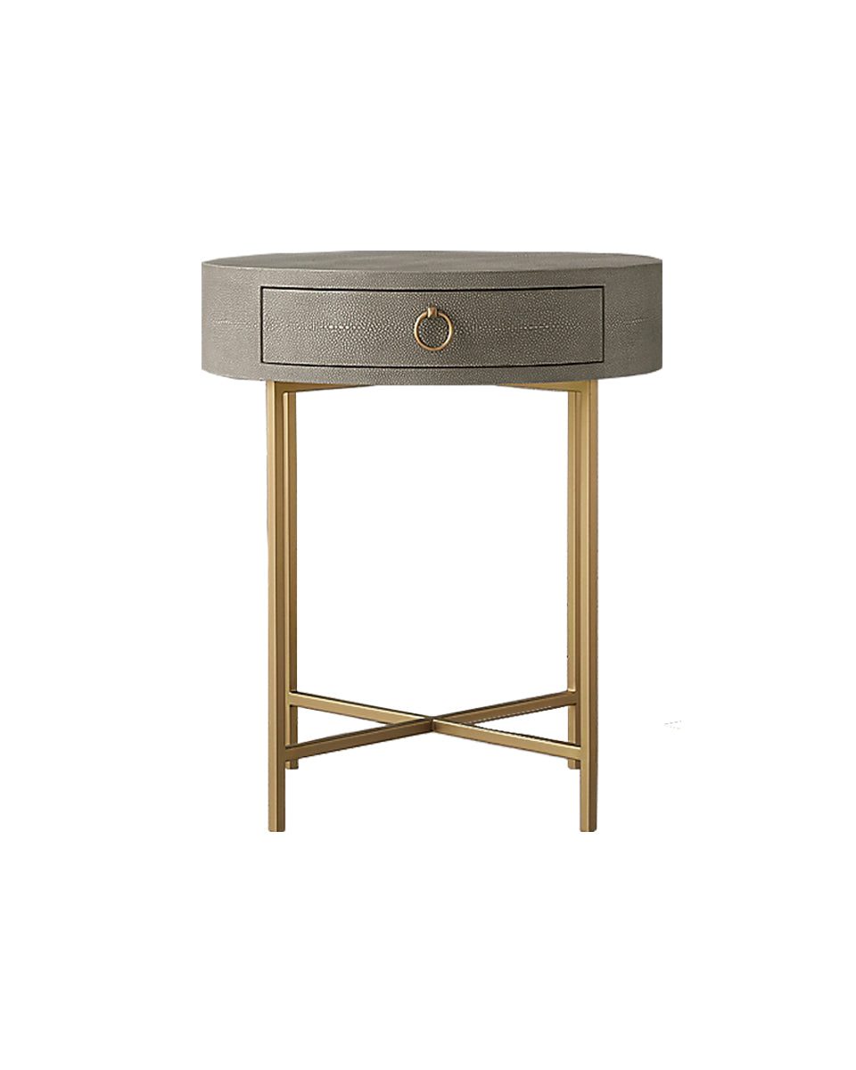 Запросить индивидуальное предложениеПрикроватная тумба “Айрин” – стильное и элегантное решение для вашей спальни. Ее сдержанные формы и изысканные детали делают ее идеальным дополнением к любому интерьеру. Тумба имеет круглую столешницу, которая целиком отделана серой кожей с точным воспроизведением текстуры и рисунка натуральной шкуры ската. Это добавляет изделию оригинальности и вневременного стиля. Ножки в тёплой цветовой гамме – латунь, придают тумбе изысканный и завершающий штрих. Эта тумба не только эстетически привлекательна, но и функциональна. Она предлагает удобное пространство для хранения рядом с вашей кроватью. Вы можете разместить на ней светильник, будильник, книгу или другие предметы, которые вы хотите иметь под рукой во время сна или перед сном. Прикроватная тумба “Айрин” также будет идеально сочетается с другими предметами мебели в вашей спальне. Ее нейтральный цвет и классический дизайн позволяют легко интегрировать ее в любой интерьерный стиль.