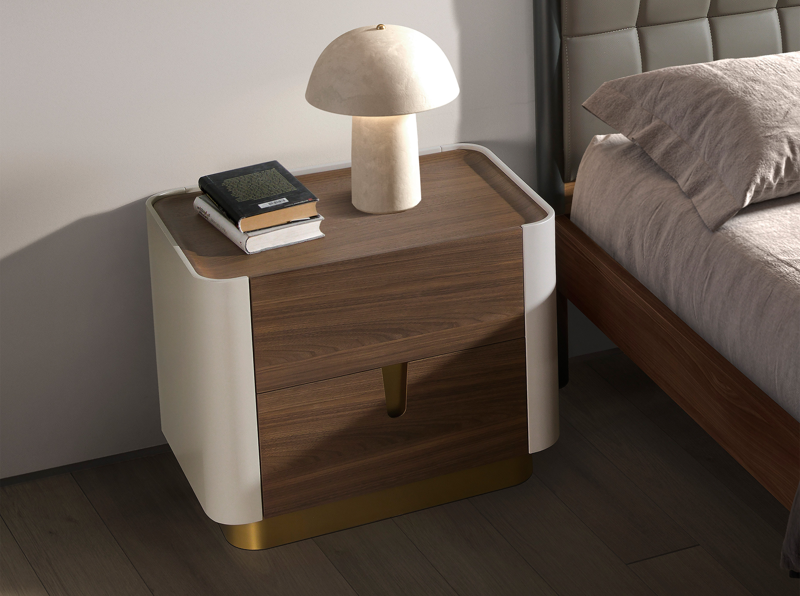 Прикроватная тумбочка 7187 из ореха и лака бежевого цвета