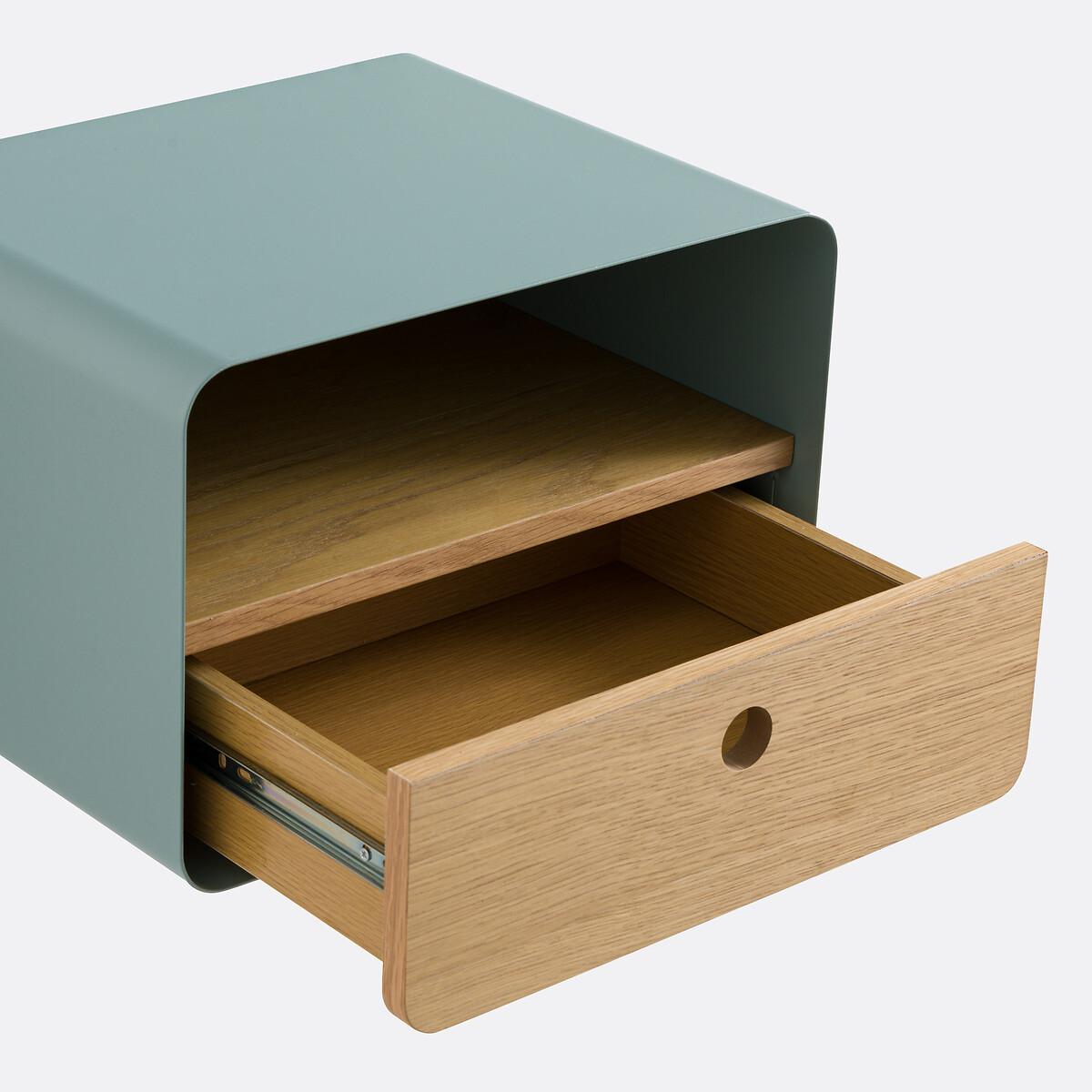 - Ящик из МДФ с отделкой шпоном из дуба, покрытого нитролаком, дно обработано меламином