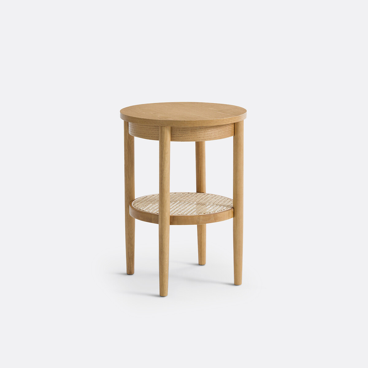Столик у изголовья с двумя столешницами из дуба м плетеного материала Pio бежевый