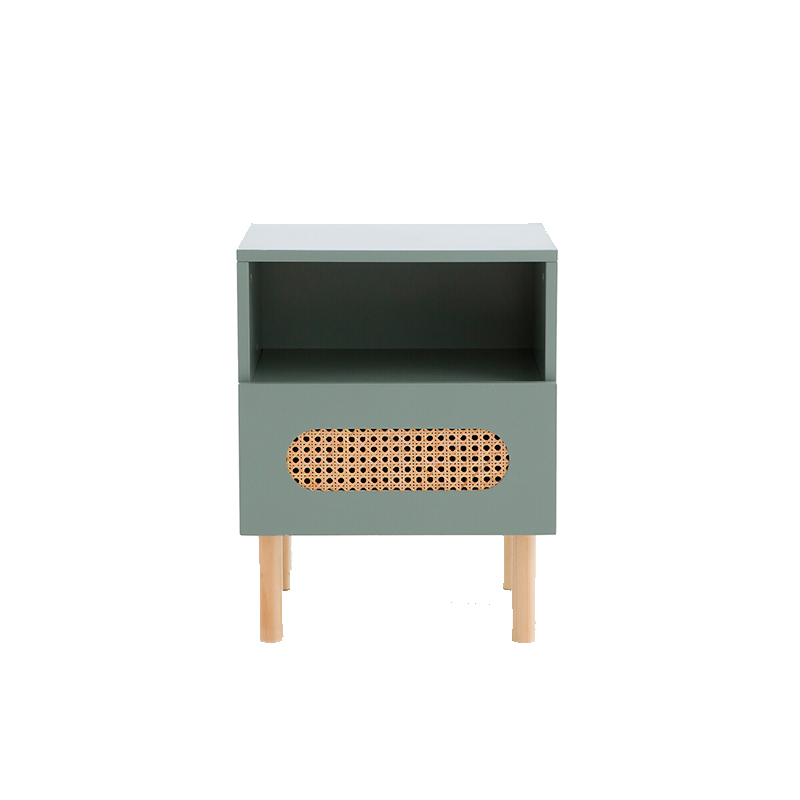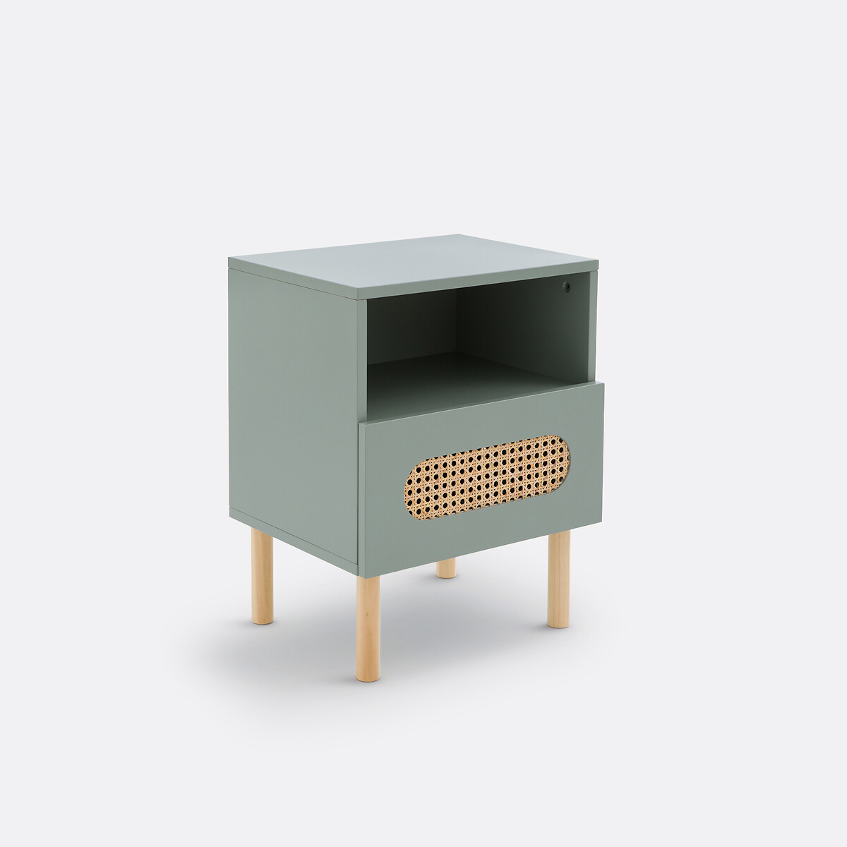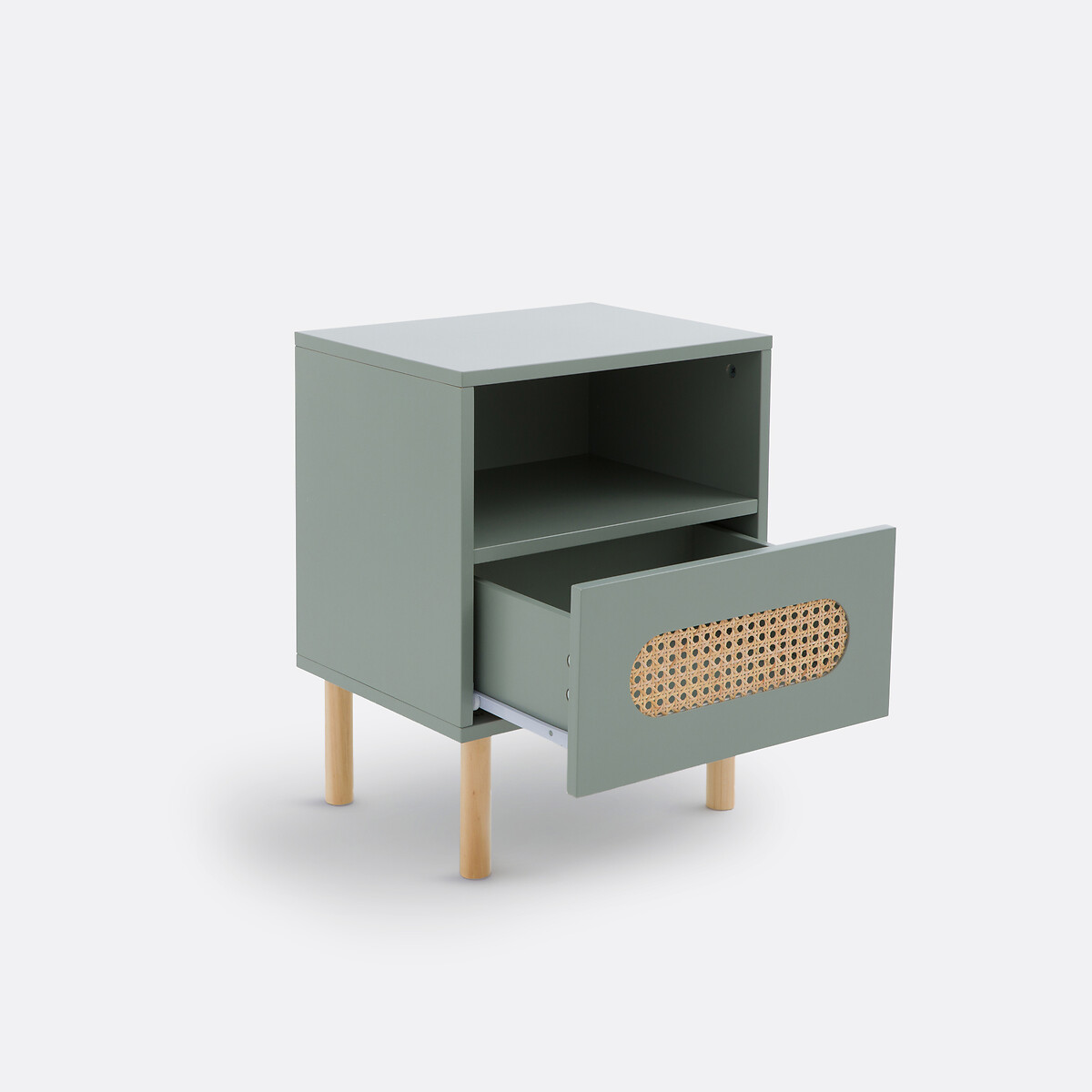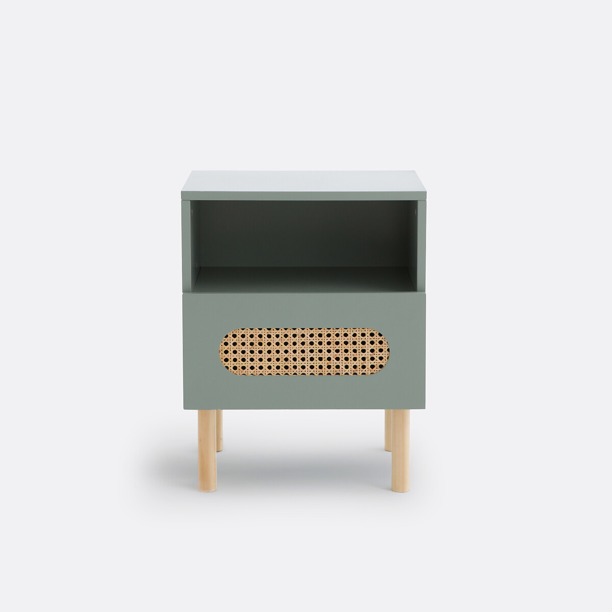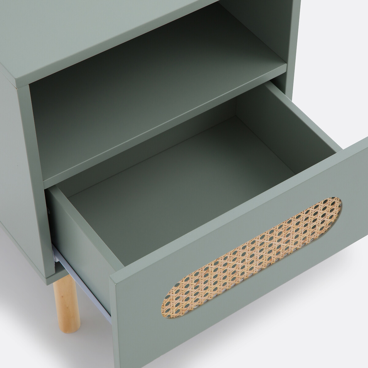 Тумба у изголовья с одним ящиком с плетением Pacome зеленый
