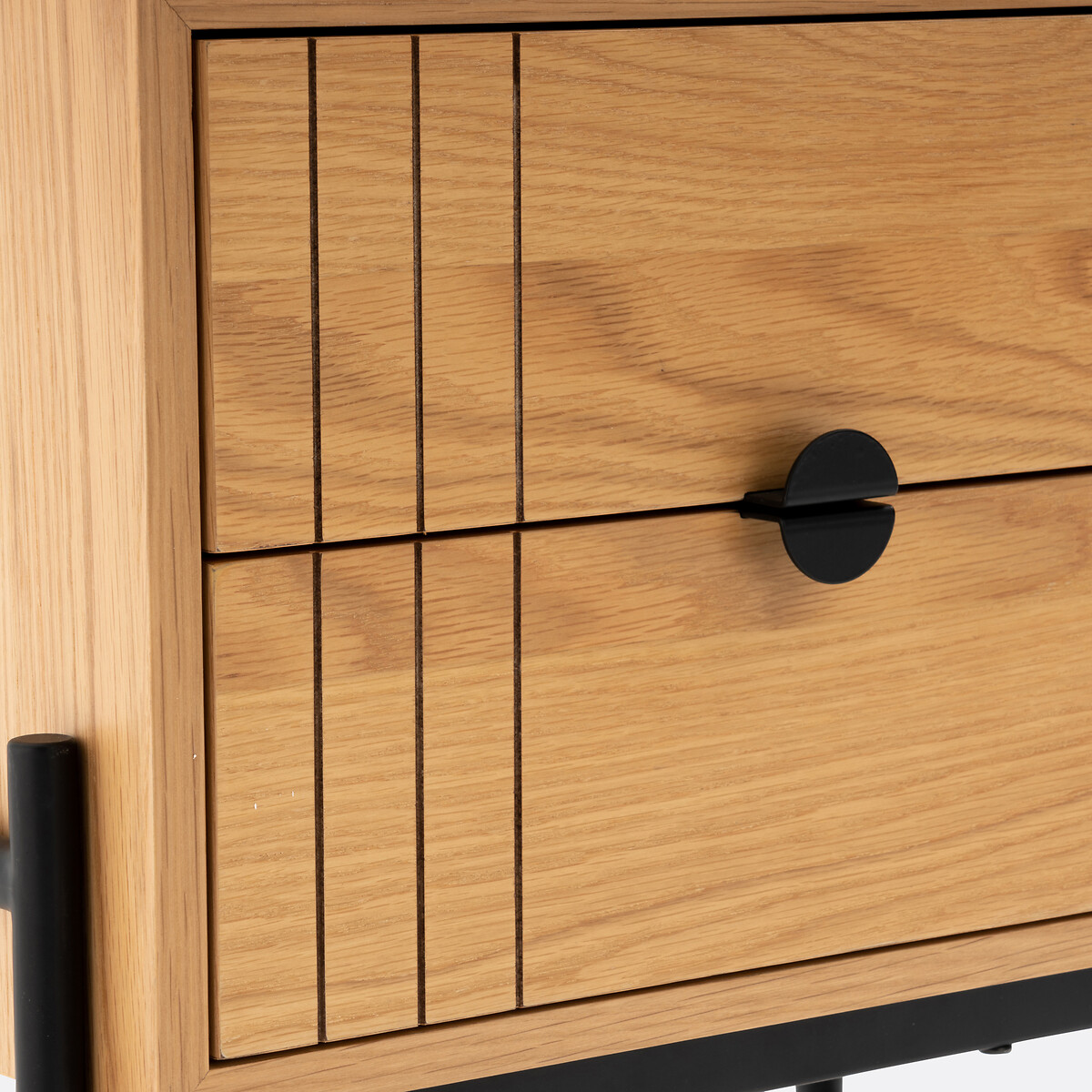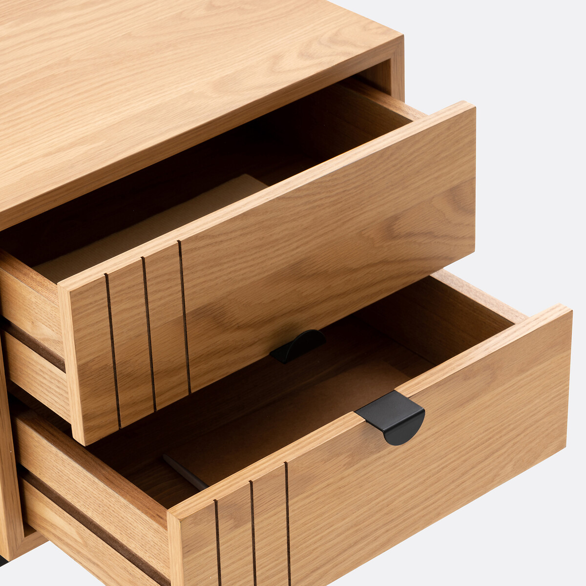 • Каркас из МДФ, покрытого дубовым шпоном, с покрытием нитролаком с декоративными полосами на фасадах ящиков