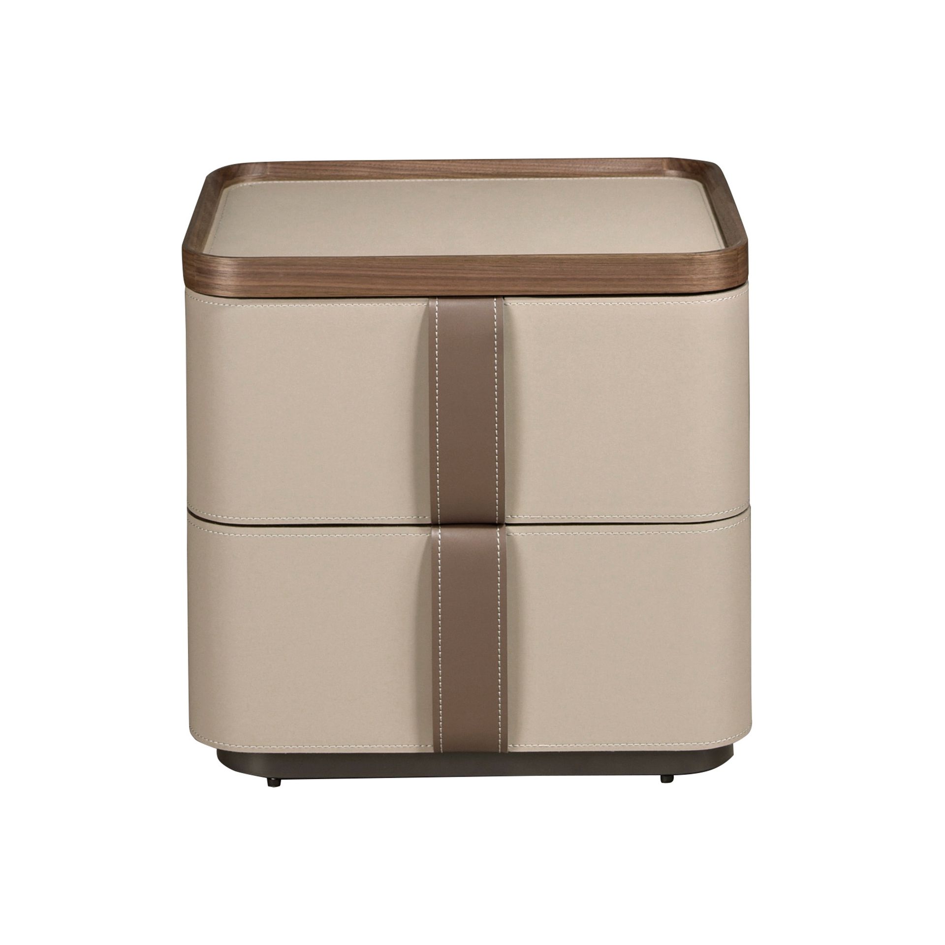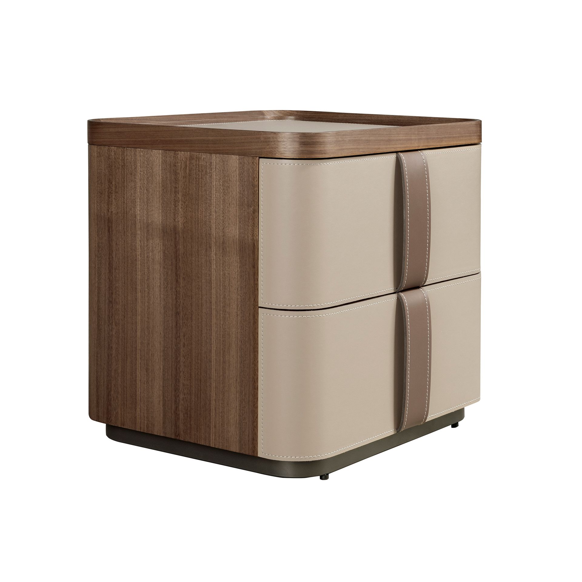 Запросить индивидуальное предложениеСовременный дизайн прикроватной тумбочки с натуральной структурой из орехового шпона, обитой кожей цвета норки и оригинальной полированной нержавеющей стальной основой. Имеет большое пространство для хранения с 2 ящиками с системой открывания с помощью язычка и системой плавного закрывания. Цвета отделки указываются в соответствии с каталогом производителя. Допускается незначительное отклонение в цвете, обусловленное техническими особенностями цветопередачи фотографий.