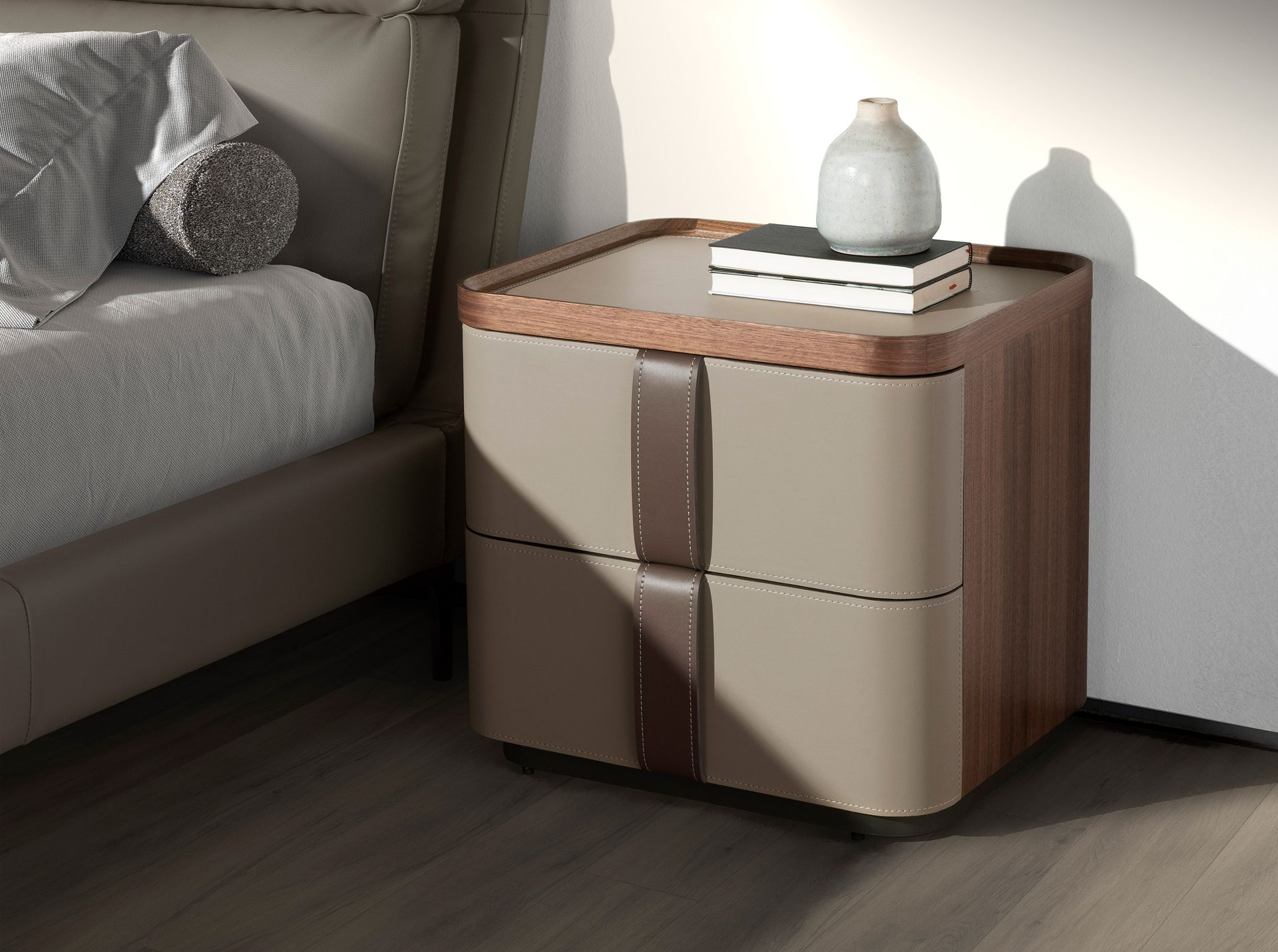 Прикроватная тумбочка 7204 из кожи, ореха и полированной стали