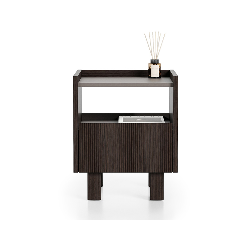 Запросить индивидуальное предложениеПрикроватная тумба Aramil выполнена из натурального шпона европейского дуба, ее образ объединяет минимализм, функциональность и элегантность скандинавского дизайна с утонченной простотой, характерной для японской эстетики.