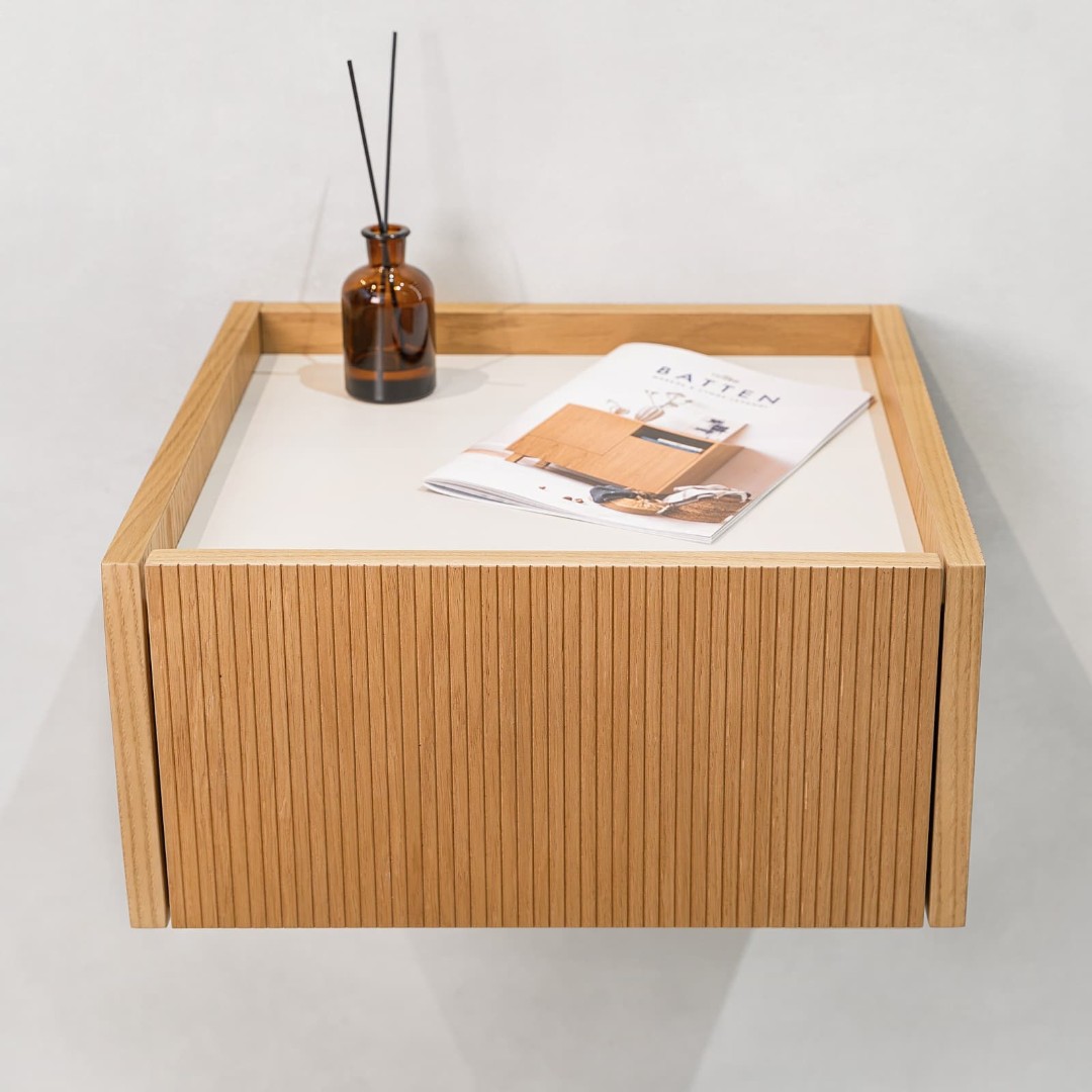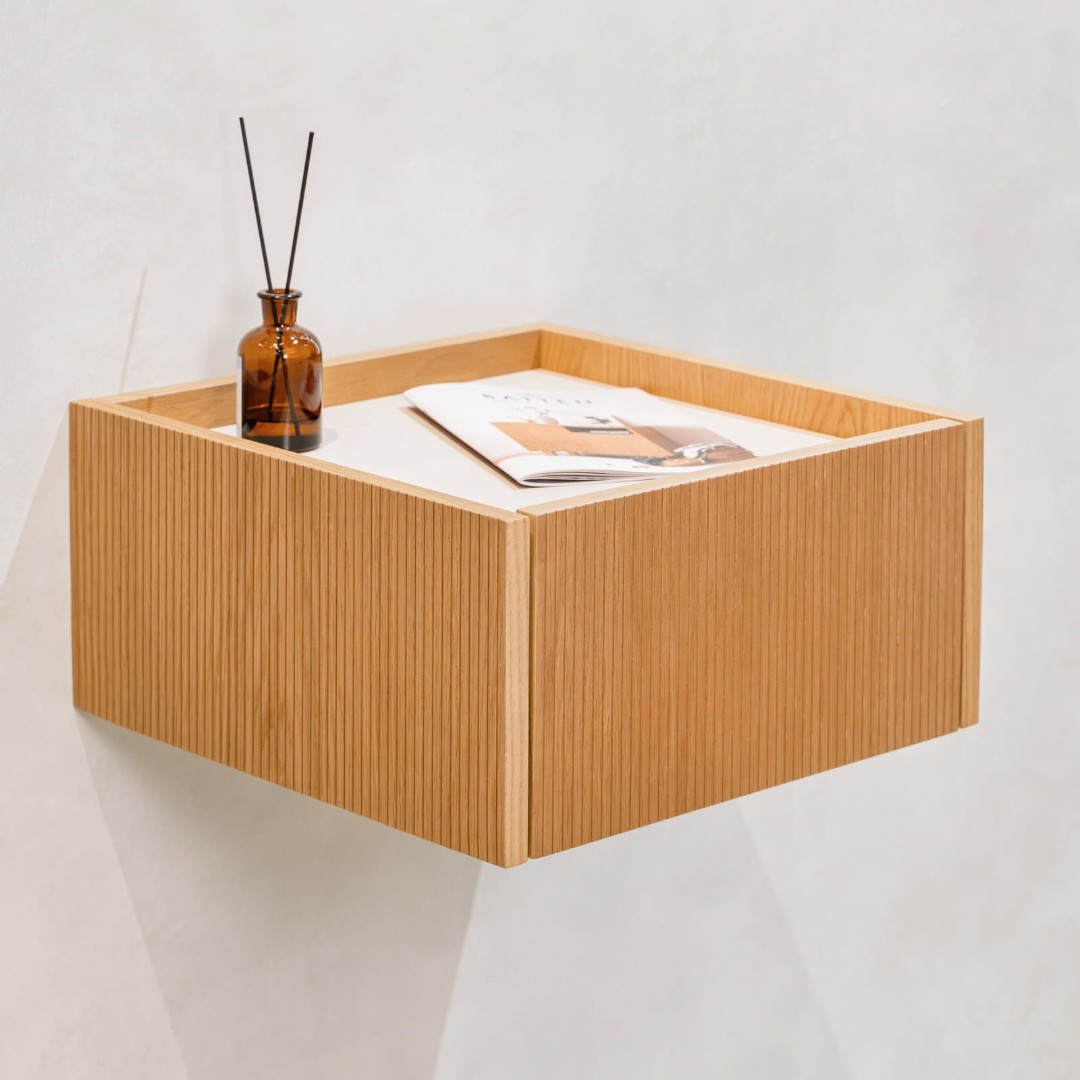 Подвесная прикроватная тумба Aramil выполнена из натурального шпона европейского дуба, ее образ объединяет минимализм, функциональность и элегантность скандинавского дизайна с утонченной простотой, характерной для японской эстетики.