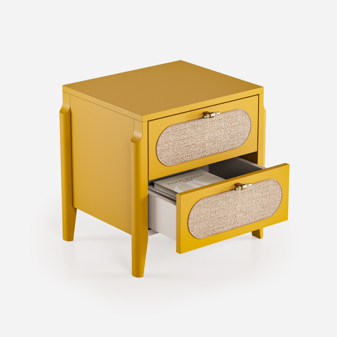 В основе дизайна коллекции Vishera – оригинальный фасадный декор, выполненный из натурального ротангового полотна. Естественная плетеная фактура ротанга придает мебели легкое очарование, свойственное традиционным ремесленным техникам, а природные текстуры и натуральные оттенки отделки создают неповторимую гармонию, теплоту и уют.