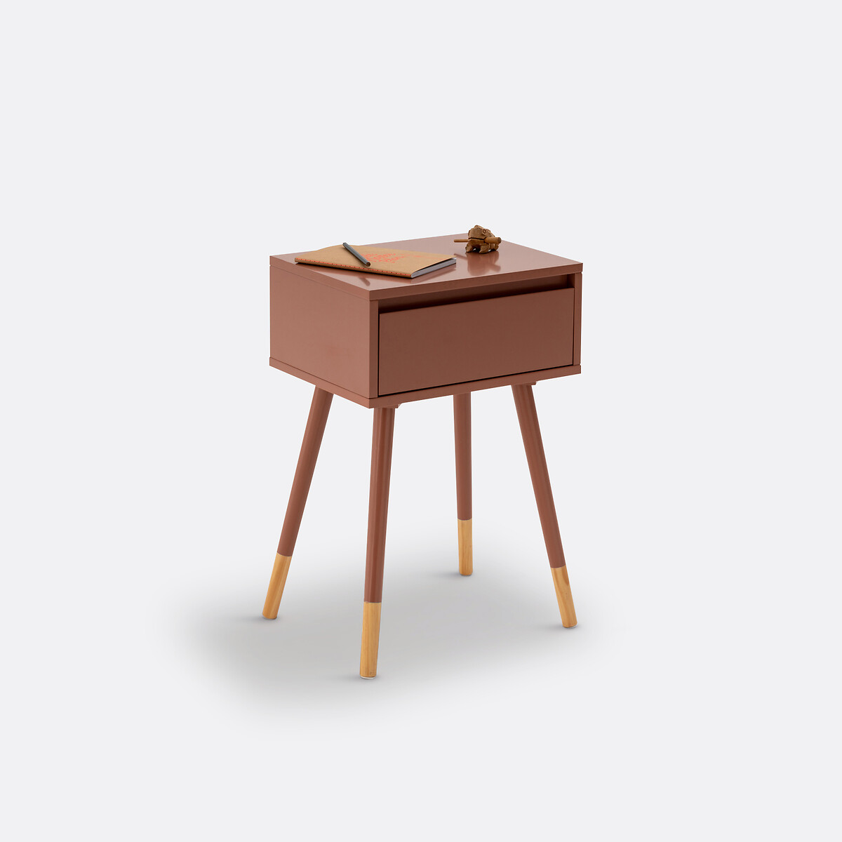 Прикроватная тумбочка на ножках с выдвижным ящиком Janik каштановый