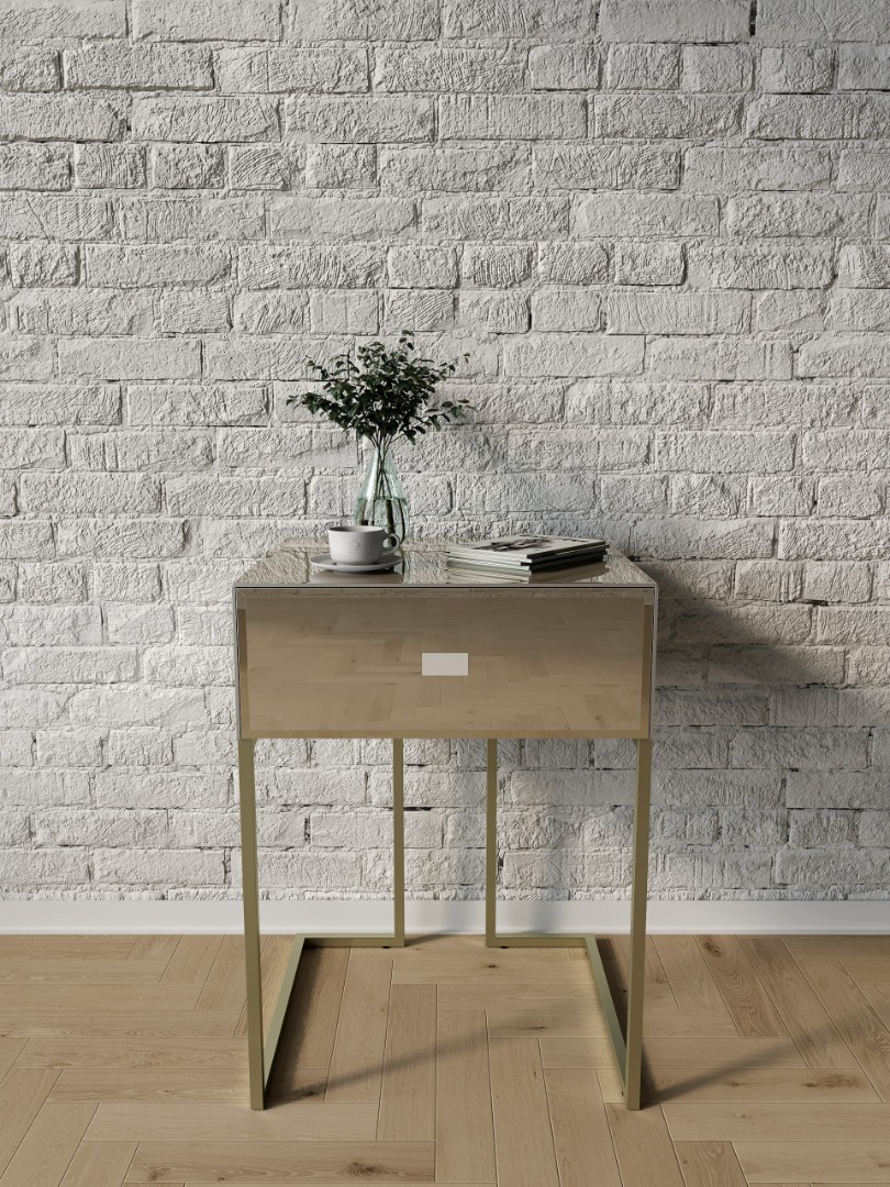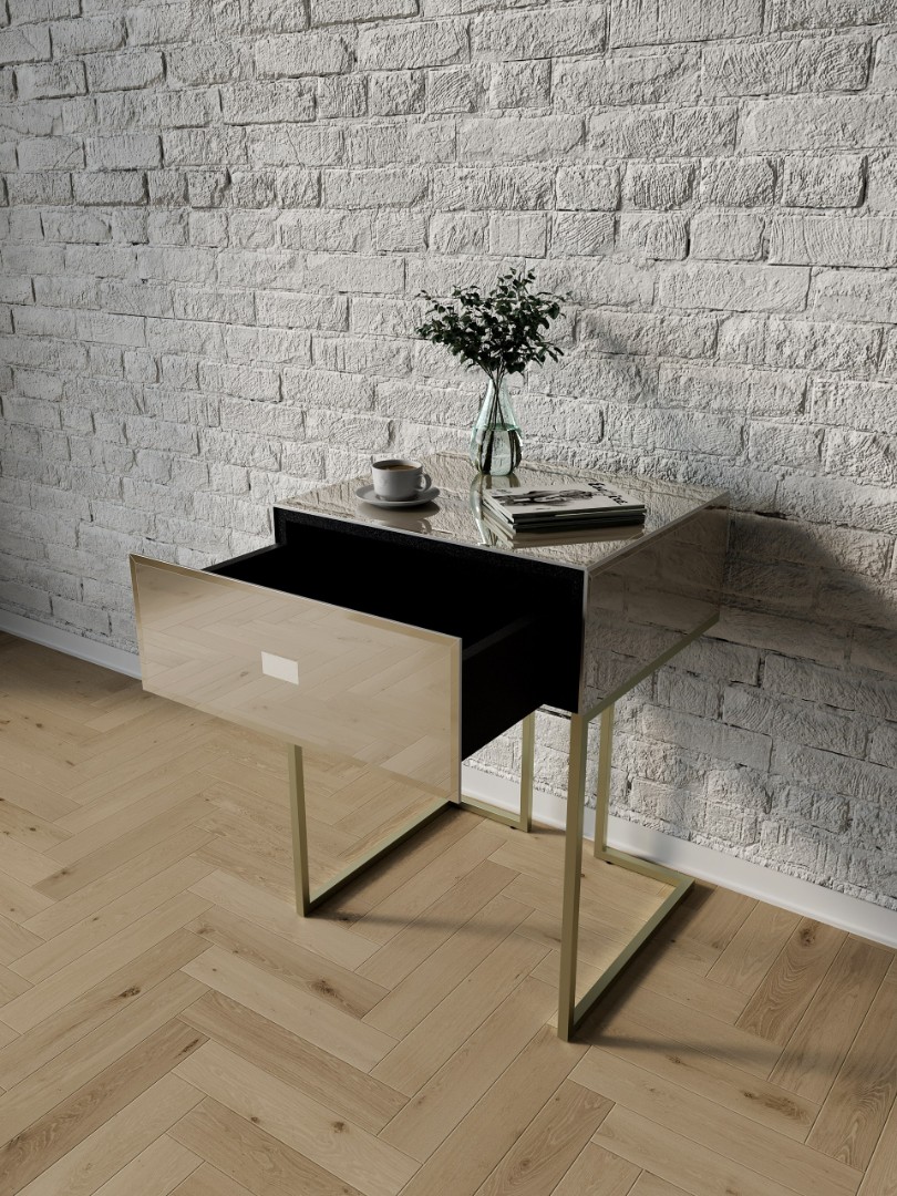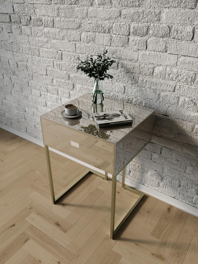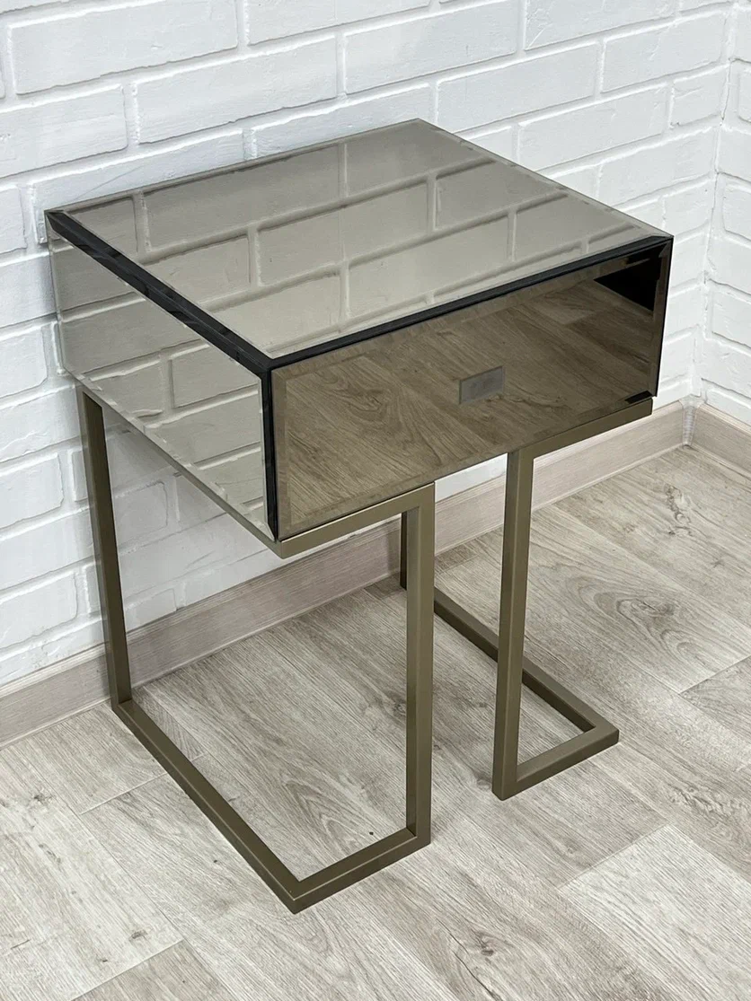 Тумба зеркальная "Иллюзия", ножки цвета шампань, бронзовый оттенок зеркал