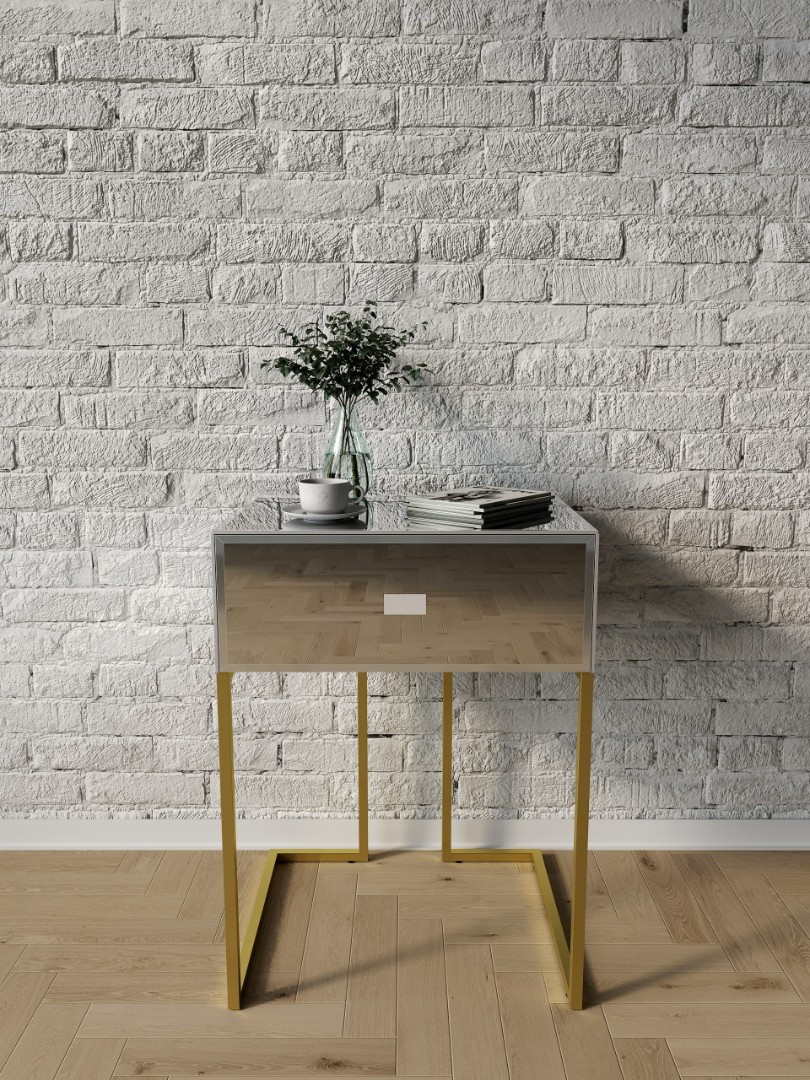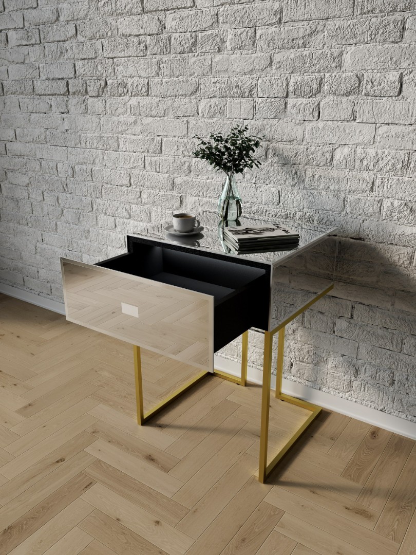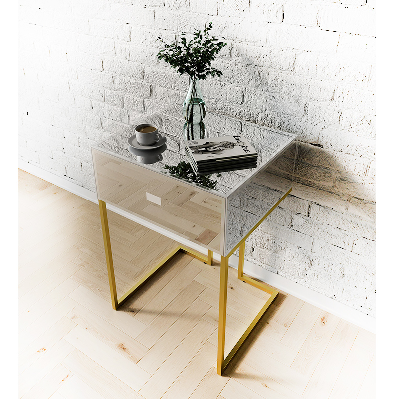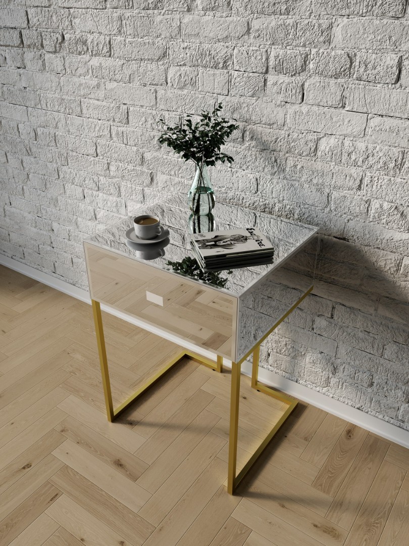 Тумба зеркальная "Иллюзия", ножки золотого цвета