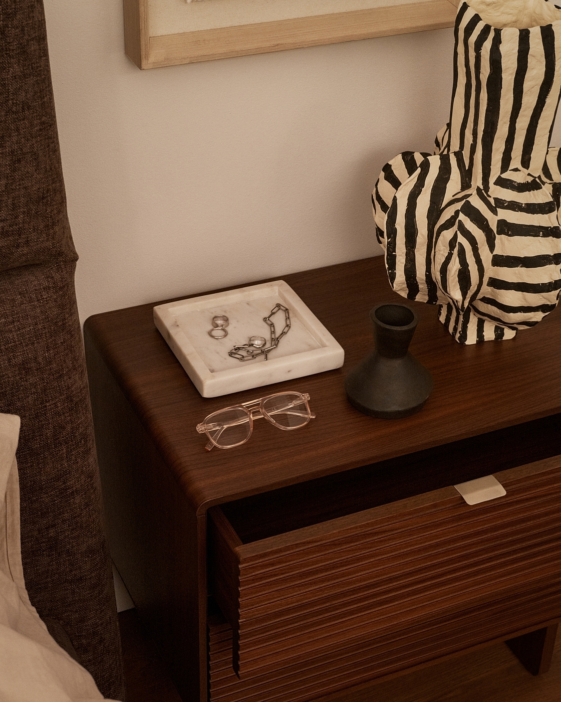 Запросить индивидуальное предложениеПрикроватная тумбочка Norlen — станет стильным и современным дополнением к интерьеру вашей спальни. Совершенное исполнение продемонстрирует ваш высокие требования к качеству домашней мебели. А безупречный ореховый шпон — умение выбирать истинную красоту.