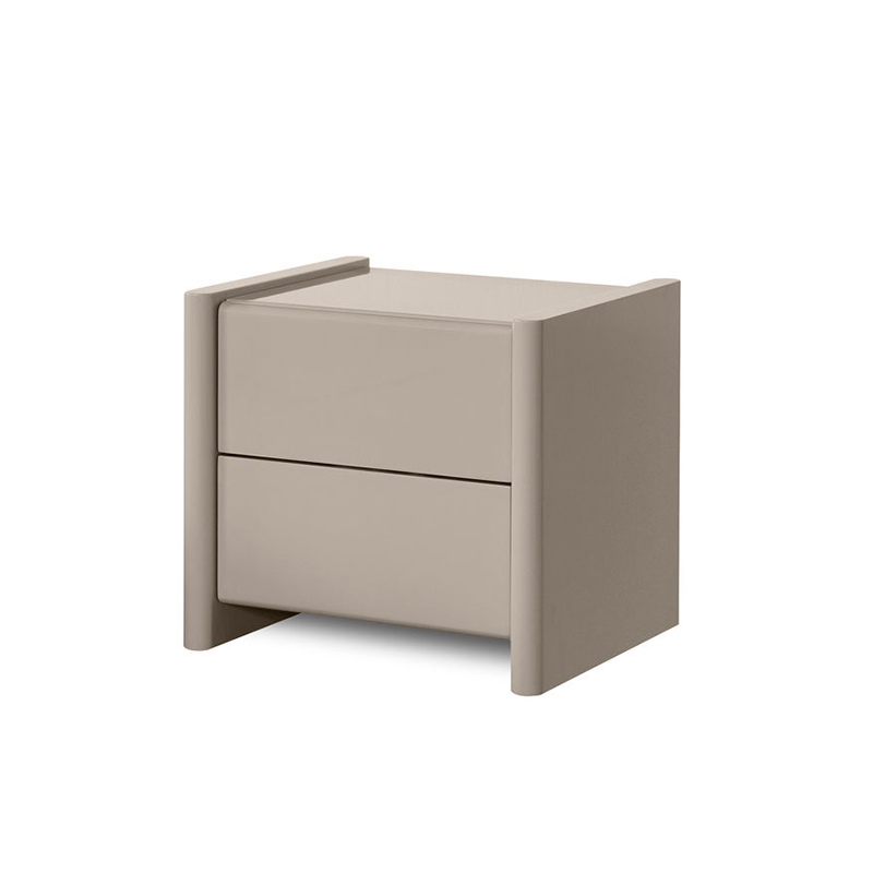Прикроватная тумбочка оснащена двумя выдвижными ящиками, которые обеспечивают комфортное и организованное хранение необходимых вещей под рукой. Ящики снабжены системой легкого открывания push-to-open: достаточно легкого нажатия, и они плавно выдвигаются, что делает использование тумбочки максимально удобным.